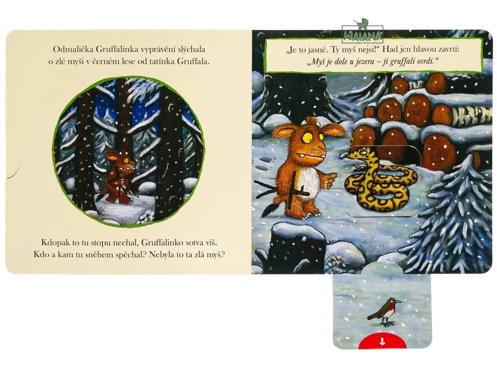 Gruffalinka - tlač, ťahaj, posúvajVychutnajte si príbeh o Gruffalinke v leporele s prvým čítaním a pohyblivými prvkamiGruffalinka sa vyberie do lesa, lenže ani na prechádzke nemá pokoj. Obáva sa myšky, hrozivej príšery, pred ktorou ju varoval jej otec Gruffalo. Nájde v sebe Gruffalinka dostatok odvahy, aby prešla lesom a vrátila sa do ich gruffalieho brlohu? Deti si tak pri čítaní môžu obrázky samy oživiť a nechať sa unášať veršovaným príbehomNenapodobiteľné ilustrácie Axela Schefflera sa geniálne prepájajú s originálnym, vtipným textom Julie Donaldson. Spoločne tvoria dnes už takmer klasický príbeh, ktorý si získal srdcia detí po celom svete. Obľúbená Gruffalinka teraz vychádza v skrátenej textovej podobe na stránkach leporela s pohyblivými prvkami.