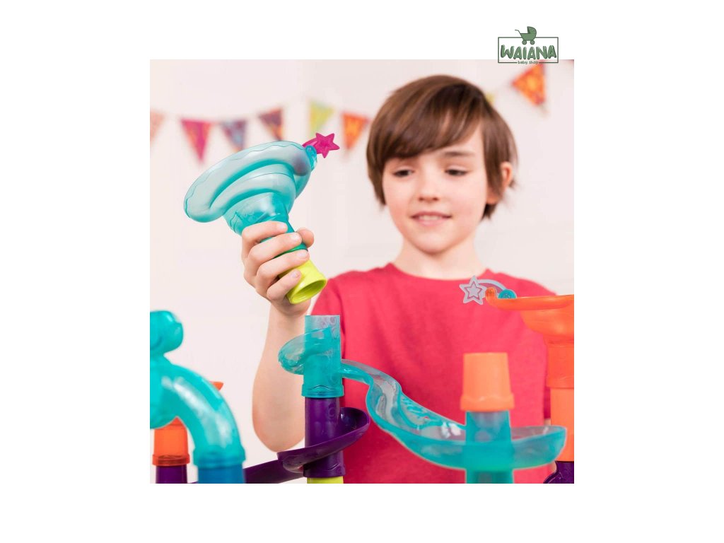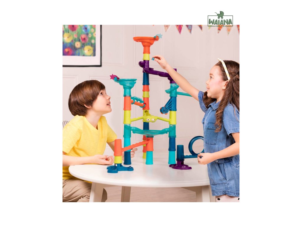 Maxi kuličková dráha nabízí nekonečnou variabilitu při stavění dráhy z barevných, odolných dílů. Postavte spolu s vašimi dětmi dráhu obsahující vysoké věže, kroutící se mosty i různorodé pohyblivé části a pak si užijte sledování pohybu kuliček celým bludištěm.