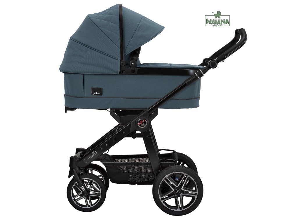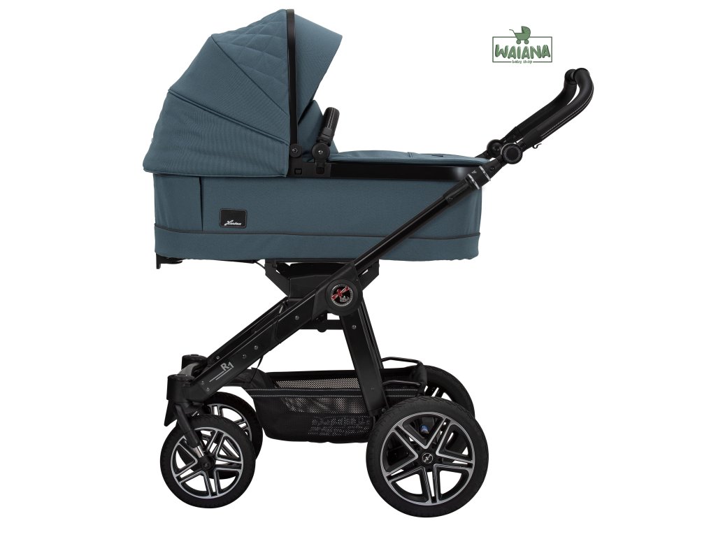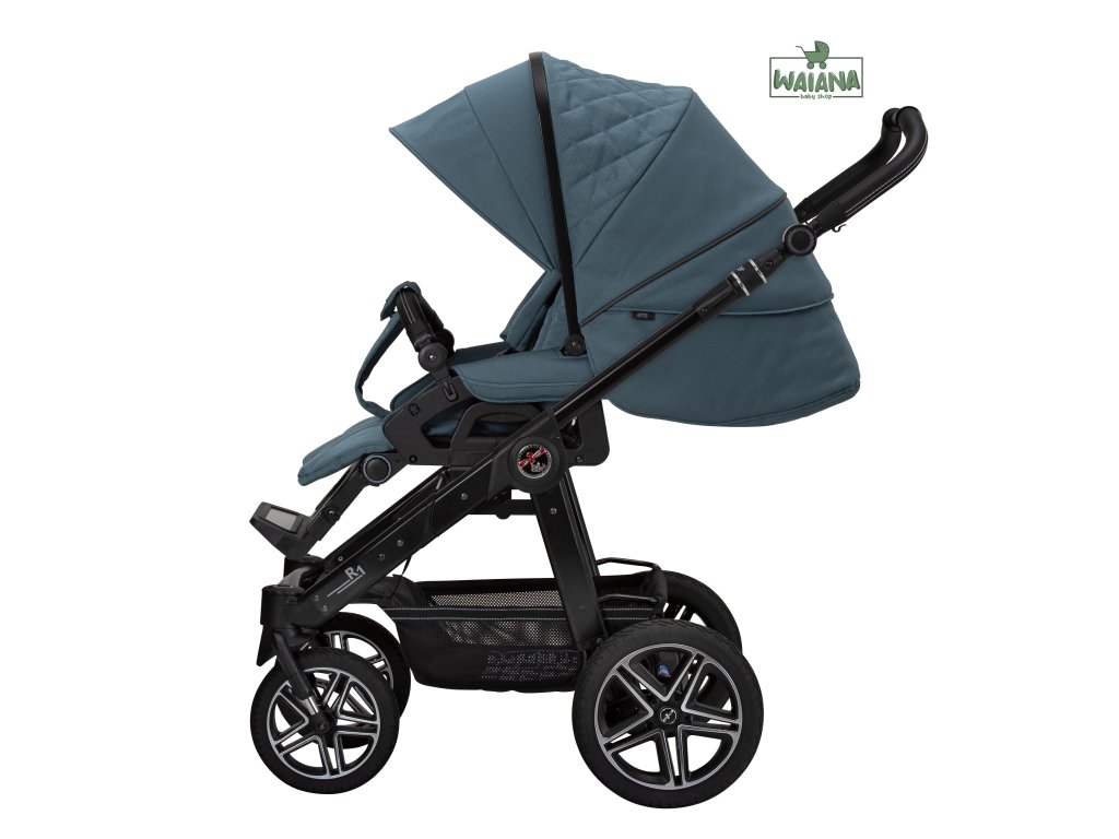 Volitelná ruční brzda na rukojeti kočárku R1 GTS z kolekce Selection poskytuje bezpečnost v jakémkoli terénu. Odpružená, extra velká přední kola nabízejí optimální jízdní vlastnosti na jakémkoli povrchu: jako otočná kola zvládají městský provoz. Zaaretovaná přední kola zůstávají bezpečně na trati i na dobrodružné cestě přes kopce a údolí. Kočárek R1 GTS zaujme čistým požitkem z jízdy i sportovním vzhledem - skutečný sportovní vůz.