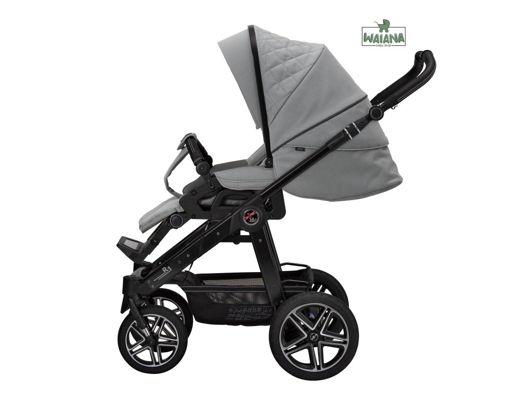 Volitelná ruční brzda na rukojeti kočárku R1 GTS z kolekce Selection poskytuje bezpečnost v jakémkoli terénu. Odpružená, extra velká přední kola nabízejí optimální jízdní vlastnosti na jakémkoli povrchu: jako otočná kola zvládají městský provoz. Zaaretovaná přední kola zůstávají bezpečně na trati i na dobrodružné cestě přes kopce a údolí. Kočárek R1 GTS zaujme čistým požitkem z jízdy i sportovním vzhledem - skutečný sportovní vůz.