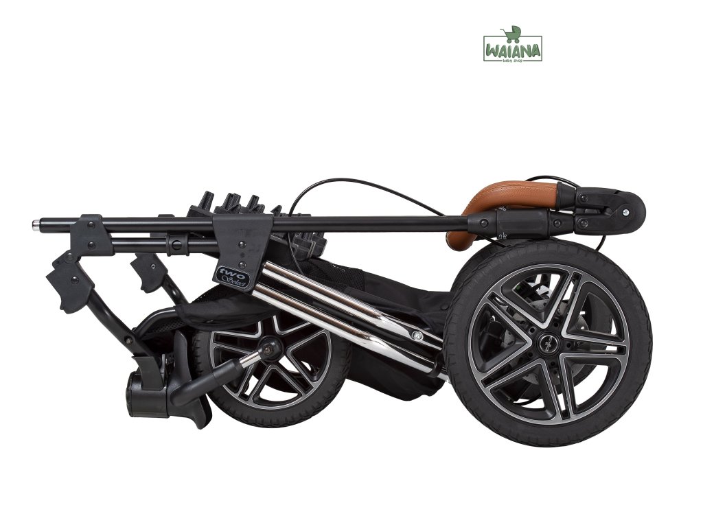 Two Select je standardně vybaven ruční brzdou a vysoce výkonnými brzdovými kotouči - pro pohodovou jízdu i v těžkém terénu. Výšku rukojeti lze individuálně přizpůsobit velikosti vašeho těla. Podvozek projde všemi dveřmi (standardní velikost dveří 80 cm). Hluboké nebo sportovní korby lze pomocí klik systému během chvilky jednotlivě vyjmout.