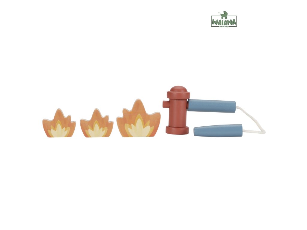Súpravu tvorí hasičský nákladiak, štyri figúrky hasičov, plamene, hydrant, strom s mačičkou a zábrana – všetko, čo je potrebné pre napínavú záchrannú misiu.