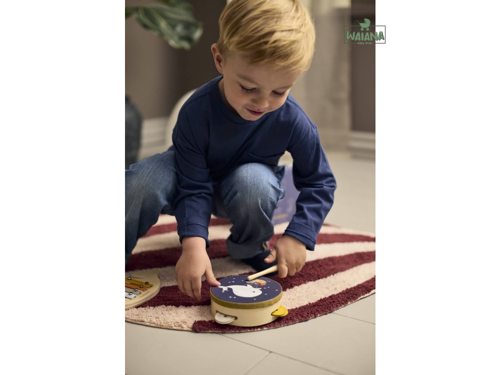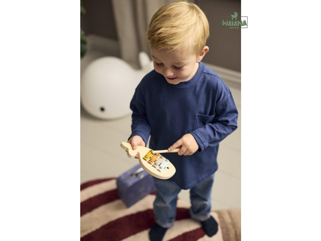 - Obsahuje 3 drevené hudobné nástroje: xylofón, kastanety a tamburínu.