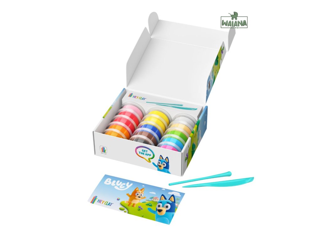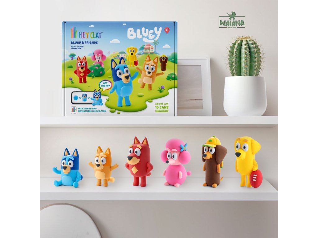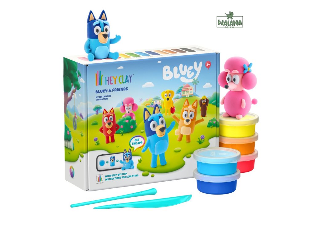 Hey Clay Bluey a priateliaVytvorte si vlastný svet BlueyPonorte sa do sveta fantázie s Bluey a jej veselými kamarátmi! S kreatívnou sadou Hey Clay: Bluey a priatelia si deti môžu vlastnoručne vytvoriť svoje obľúbené postavičky – tvorivú Bingo, športového Luckyho, vynaliezavého Snickersa, štýlovú Coco a šikovného Rustyho. Objavte inšpirácie v aplikácii a vytvorte si postavičky presne podľa návodu Sada obsahuje 15 nádobiek farebnej plastelíny a 2 plastové pomôcky pre jednoduchšie modelovanie. Navyše, prístupový kód do aplikácie umožňuje detičkám inšpirovať sa novými nápadmi a vytvoriť 6 rôzne postavičky presne podľa návodu. Ak deti nie sú so svojím výtvorom spokojné, Hey Clay môžu jednoducho uložiť späť do téglika a pokračovať v modelovaní neskôr. Deti si pri hre trénujú svoje zručnosti, jemnú motoriku a rozvíjajú fantáziu.