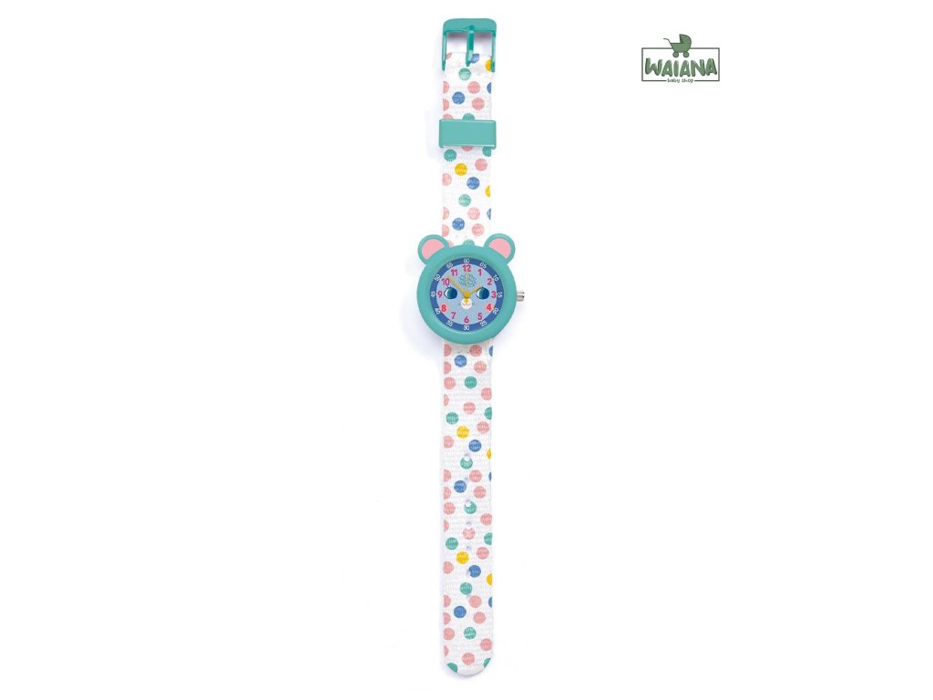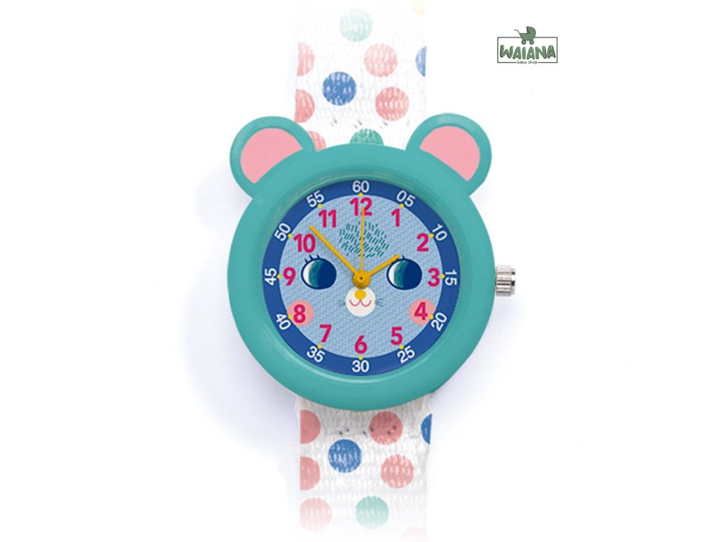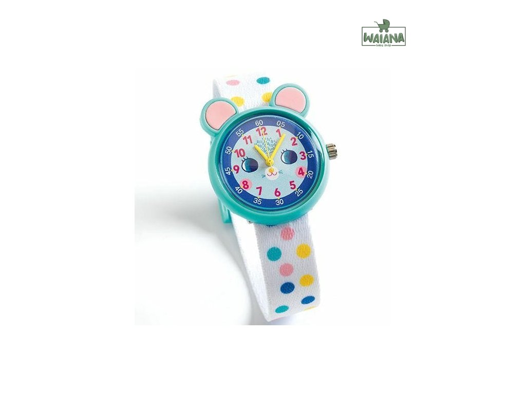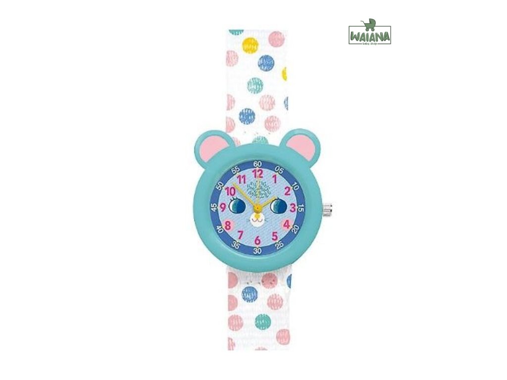 Sú skvelé ako prvé hodinky pre deti. Náramkové ručičkové hodinky s hravým elegantným dizajnom, motívom myšky a prehľadným ciferníkom sú krásny módny doplnok aj praktická pomôcka na učenie sa času. Deti sa vďaka nim naučia určovať čas. Kto pozná čas, ten je už „veľký“. Na ciferníku sú vyznačené hodiny a päťminútové úseky. Nečujný japonský mechanizmus Miyota 2035 poháňa gombíková batéria SR626SW Sony, ktorá je súčasťou balenia. Remienok je z polyesteru, pracka z pevného plastu. Hodinky sú nárazuvzdorné a vlhkotesné (3 bar), t.j. odolajú náhodným fŕkancom vody (napr. dažďa, pri umývaní rúk).Záruka: 2 rokyRozmery: 3 x 20 (dĺžka remienka s prackou) x 1,4 cm