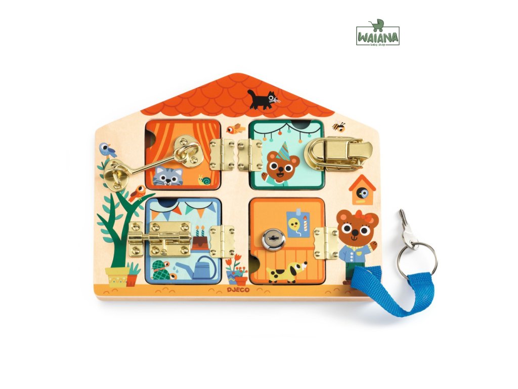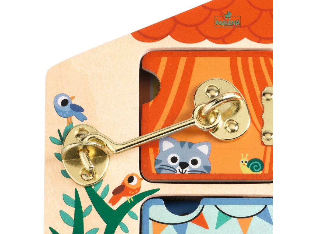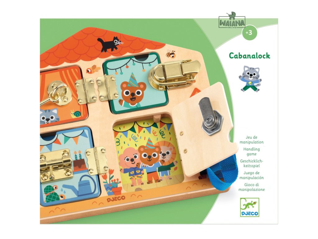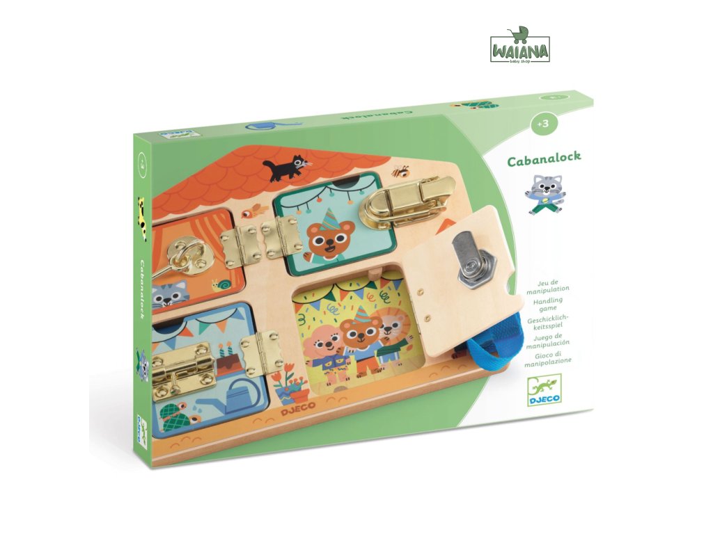 Hra Cabanalock Domček so zámkamiMotorická hra, ktorá deťom otvorí svet objavovania, zručností a radosti z úspechuObjavte čarovný drevený domček so zámkami, ktorý deti nielen zabaví, ale aj podporí v rozvoji dôležitých zručností. Cabanalock je krásne ilustrovaná edukatívna hračka navrhnutá pre malé ručičky, ktoré túžia skúmať, otvárať a objavovať nové zákutia.Domček má 4 rozličné dvierka, z ktorých každé je vybavené iným typom kovového zámku. Pri každom pokuse otvoriť ich si deti precvičujú jemnú motoriku, silu prstov, koordináciu oko–ruka aj logické premýšľanie. Keď sa im podarí dvierka odomknúť, čaká ich odmena – krásne ilustrované izbičky, ktoré skrývajú veselý príbeh o malej oslave.Hra, ktorá rastie spolu s dieťaťomPri hraní s domčekom si deti prirodzene rozvíjajú: