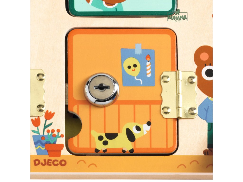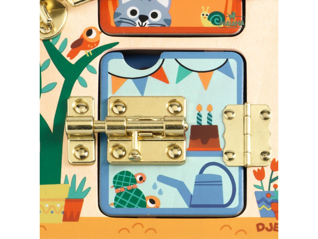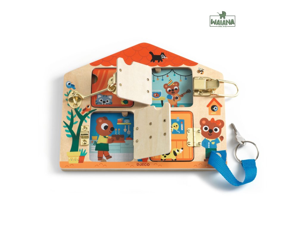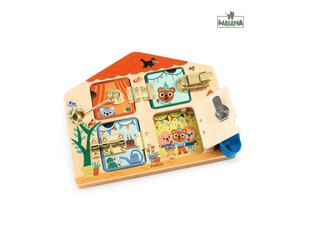 Hra Cabanalock Domček so zámkamiMotorická hra, ktorá deťom otvorí svet objavovania, zručností a radosti z úspechuObjavte čarovný drevený domček so zámkami, ktorý deti nielen zabaví, ale aj podporí v rozvoji dôležitých zručností. Cabanalock je krásne ilustrovaná edukatívna hračka navrhnutá pre malé ručičky, ktoré túžia skúmať, otvárať a objavovať nové zákutia.Domček má 4 rozličné dvierka, z ktorých každé je vybavené iným typom kovového zámku. Pri každom pokuse otvoriť ich si deti precvičujú jemnú motoriku, silu prstov, koordináciu oko–ruka aj logické premýšľanie. Keď sa im podarí dvierka odomknúť, čaká ich odmena – krásne ilustrované izbičky, ktoré skrývajú veselý príbeh o malej oslave.Hra, ktorá rastie spolu s dieťaťomPri hraní s domčekom si deti prirodzene rozvíjajú: