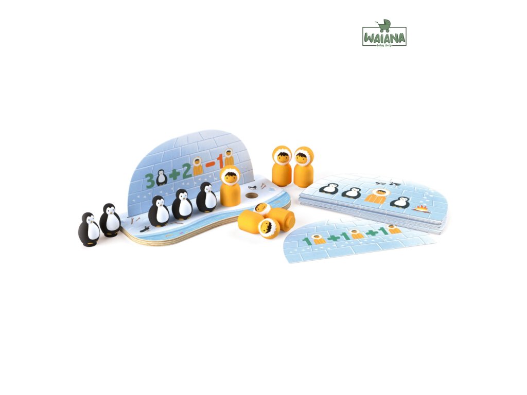 Dieťa si vyberie kartu so zadaním (napr. „3 tučniaky pred iglu“ alebo „5 – 2“).