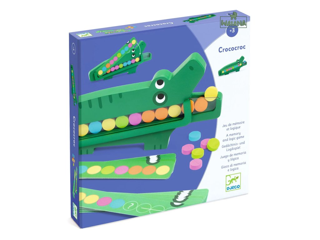 Hra CrococrocNakŕm hladného krokodíla – ale len v správnom poradí!Hra Crococroc je ideálna pre malých zvedavcov, ktorí milujú výzvy, farebné žetóny a hravé učenie. Úlohou detí je nakŕmiť dreveného krokodíla podľa presného poradia, ktoré určuje predlohová kartička. Stačí si vybrať zadanie, položiť kartičku na krokodílovo brucho a sledovať farebný rad. Potom krokodílovi „napcháte“ do papuľky drevené žetóny v správnom poradí. Keď je krokodíl nasýtený, deti si jednoducho otočením kartičky overia, či dokázali dodržať správnu postupnosť. Hravý princíp okamžite motivuje deti skúšať to znovu – s novými úlohami aj vyššou náročnosťou.Zábavná a edukatívna hra v jednomCrococroc je skvelou aktivitou na rozvoj: