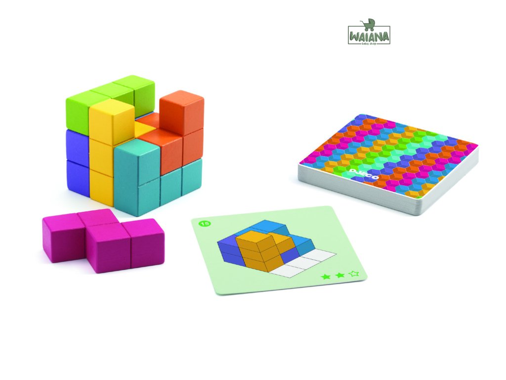 Hra CubissimoPriestorový hlavolam, ktorý preverí tvoju logiku, predstavivosť aj trpezlivosťCubissimo je fascinujúca 3D logická hra, ktorá v sebe spája prvky tetrisovej skladčky a náročného priestorového puzzle. Je dokonalou výzvou pre deti aj dospelých, ktorí radi premýšľajú, skúšajú nové kombinácie a radi si lámu hlavu nad hlavolamami. Hra obsahuje 7 farebne odlíšených drevených dielikov, z ktorých je možné postaviť dokonalú kocku – no len vtedy, ak ich uložíš v správnej orientácii a poradí. Znie to jednoducho? Nie tak celkom! Hráč totiž nevyrába celú kocku od nuly – musí najprv vychádzať z východiskovej zostavy určenej kartou zadania a zvyšné dieliky doplniť tak, aby kocka vznikla bez jedinej medzery.30 zadaní, 3 úrovne náročnosti, nekonečne veľa pokusovPredlohové karty sú rozdelené do troch úrovní – od jednoduchých až po skutočne výzvové. To umožňuje, aby si na svoje prišli: