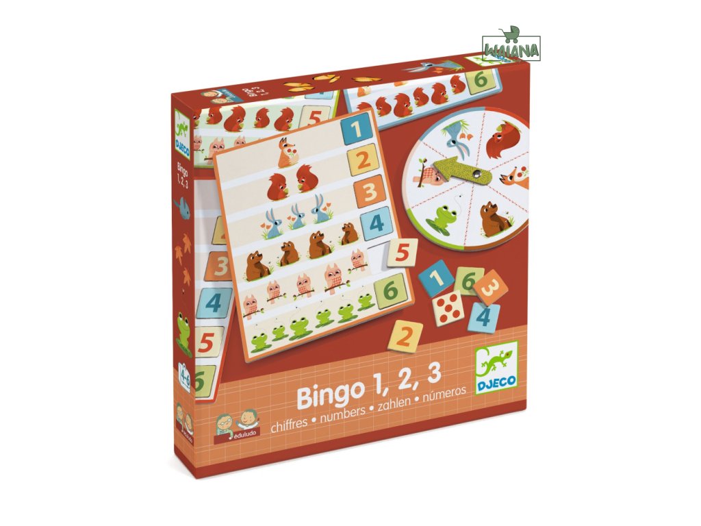 Hra Eduludo Bingo 1, 2, 3 Zábavné spoznávanie čísiel Spoločenská stolová hra z kolekcie edukačných hier Eduludo, v ktorej sa zábavným spôsobom spoznávajú čísla od 1 do 6. Postup hry: hráč, ktorý je na ťahu, zatočí ruletkou a vytočí si zvieratko. Podľa počtu daných zvieratiek na svojej hernej doske si vyberie žetón s príslušným číslom a položí si ho na hernú dosku. Potom nasleduje ďalší hráč. Keď vytočí zvieratko, ktoré už má spočítané, vynechá ťah a nasleduje protihráč. Kto prvý vyplní svoju hernú dosku číslami od 1 do 6, je víťaz. Variabilita náročnosti Hra má 2 stupne náročnosti: jednoduchší, keď hráč používa čísla vyjadrené bodkami a náročnejší, keď používa čísla vyjadrené numericky.Vyrobené z papiera a lepenky s ekologickým certifikátom FSC®.Eduludo je kolekcia edukačných hier pre deti predškolského veku, z ktorých každá je zameraná na rozvoj konkrétnej zručnosti.Obsah: 4 herné dosky, 1 ruletka, 24 obojstranných žetónov, pravidlá hry.