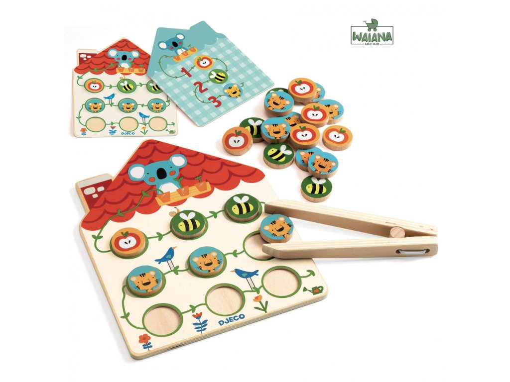 Hra Počítanie s pinzetouZábavný spôsob, ako sa naučiť počítať a posilniť jemnú motorikuTáto krásne spracovaná drevená edukačná hra je ideálnou pomôckou pre deti, ktoré sa začínajú zoznamovať s prvými číslami. Pomocou hravej manipulácie s pinzetou deti plnia jednoduché úlohy a prirodzene si rozvíjajú matematické myslenie aj motorické zručnosti potrebné pre budúce písanie. Dieťa si vyberie kartičku so zadaním – malá koala sediaca na streche domčeka „školy“ ukazuje, koľko žetónov treba vložiť dovnútra. Úloha dieťaťa je potom pomocou drevenej pinzety preniesť správny počet žetónov a uložiť ich do otvoru v domčeku. Na zadnej strane každej kartičky sa nachádza správne riešenie, takže hra umožňuje aj samostatné učenie bez neustálej pomoci dospelého.Čo táto hra rozvíja?Hra Počítanie s pinzetou podporuje viacero kľúčových zručností:
