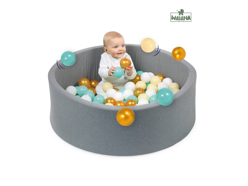 - Ohrádka je naplněna jemnými plastovými míčky v pastelových barvách, které stimulují dětské smysly a podporují rozvoj motoriky a koordinace