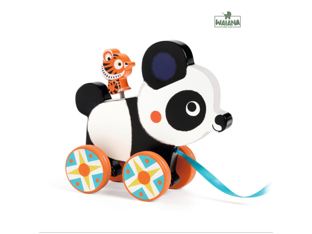 Hračka na ťahanie Panda Billie Drevená hračka na ťahanie pre batoľatá Panda na 4 kolieskach s tlmiacimi silikónovými krúžkami a textilnou stuhou na ťahanie je skvelou hračkou pre batoľatá, ktoré už chodia.Tigrík na kovovej strune na chrbte pandy sa pri pohybe hračky mierne kýve.Hračka z kolekcie Baby color Baby color je kolekcia rozvíjajúcich drevených hračiek, pre ktoré sú typické výrazné farby a nápaditý dizajn. Zahŕňa originálne hračky, ktoré už patria medzi klasiku, alebo osvedčené hračky so sviežim redizajnom. Sú vyrobené z dreva s ekologickým certifikátom FSC®.