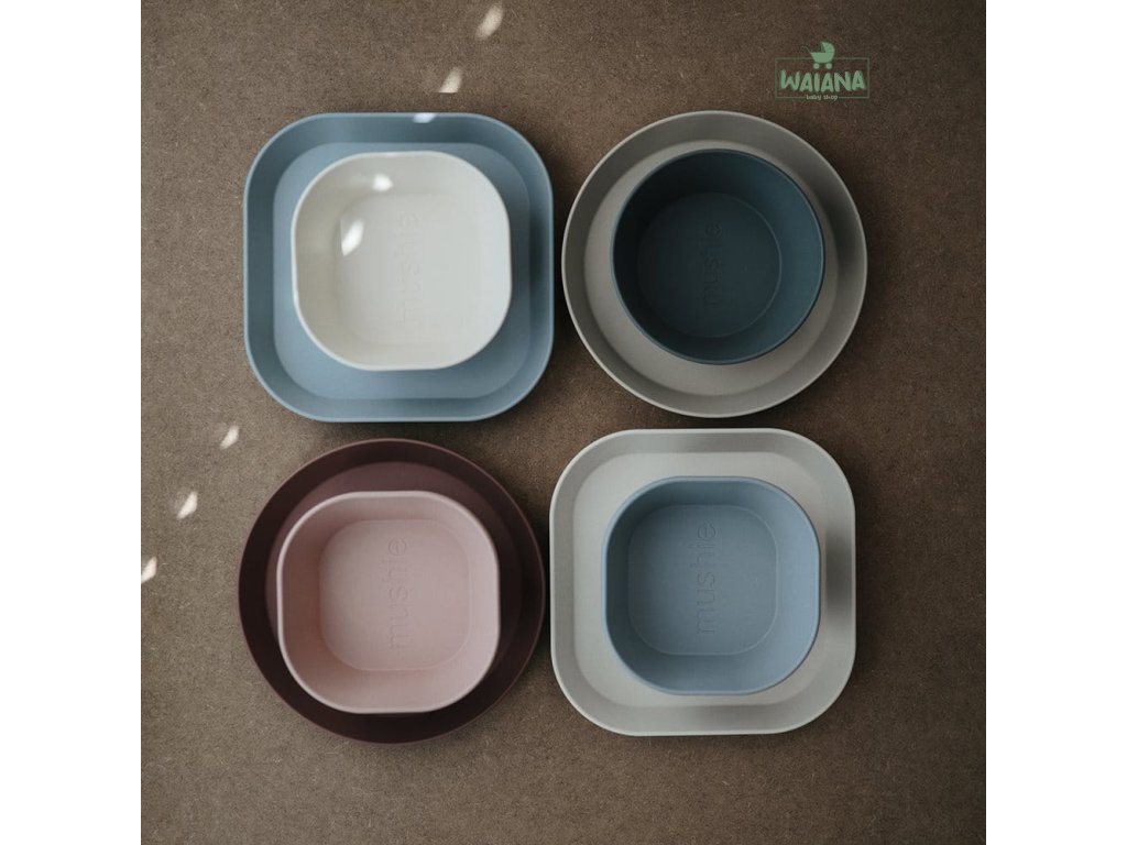 Hranatá jedálenská sada Mushie v jemnom odtieni Ivory je praktický a štýlový riad pre deti, ktoré sa učia jesť samostatne.