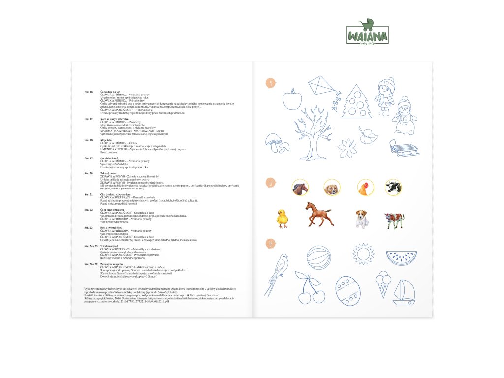 Hravé poznávanie 5-6 rokovPracovný zošit zahŕňa úlohy, ktoré sa zameriavajú na všeobecný rozhľad u detí predškolského veku.Prostredníctvom úloh sa deti dozvedia o ročných obdobiach a ich charakteristických znakoch, získajú informácie o rodine a svojej vlasti, naučia sa orientovať vo svojom okolí a v čase, oboznámia sa so sviatkami a tradíciami, spoznajú svoje telo, získajú poznatky o význame pohybu a zdravej výživy pre zdravie, naučia sa triediť odpad a recyklovať.Zadania sú doplnené ľahko zapamätateľnými básničkami, ktoré korešpondujú s témou a úlohou, ktorú deti plnia.Pracovný zošit je v súlade so Štátnym vzdelávacím programom pre predprimárne vzdelávanie v materských školách.