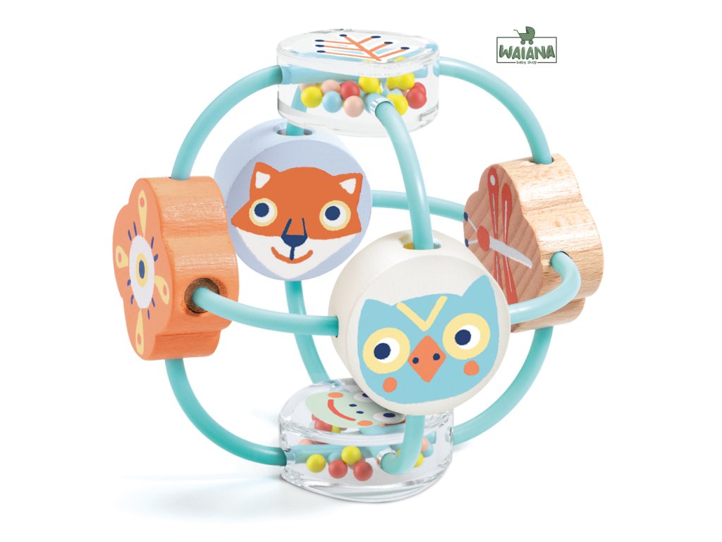 Hrkálka Lesné zvieratá Hrkálka v tvare lopty S maľovanými drevenými a priehľadnými plastovými korálkami na ľahkej kovovej konštrukcii. Pri trasení hrkálkou guľôčky v korálkach hrkajú. Dieťa dokáže hrkálku dobre uchopiť Baby white je kolekcia rozvíjajúcich hračiek koncipovaných ako milé, harmonické a jedinečné produkty. Vyznačuje sa výrazným podielom prírodného dreva a jemných farieb. Kolekciu navrhuje Christophe Gilet, jeden z top dizajnérov drevených hračiek. Pre Djeco je dlhoročná spolupráca s ním veľkou cťou!Odporúčaný vek: 3+ mesiacovRozmery: 10 x 10 x 10 cm
