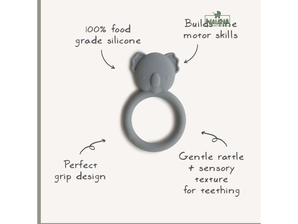 Mushie hryzadlo z potravinárskeho silikónu poskytuje úľavu pri prerezávaní zúbkov.