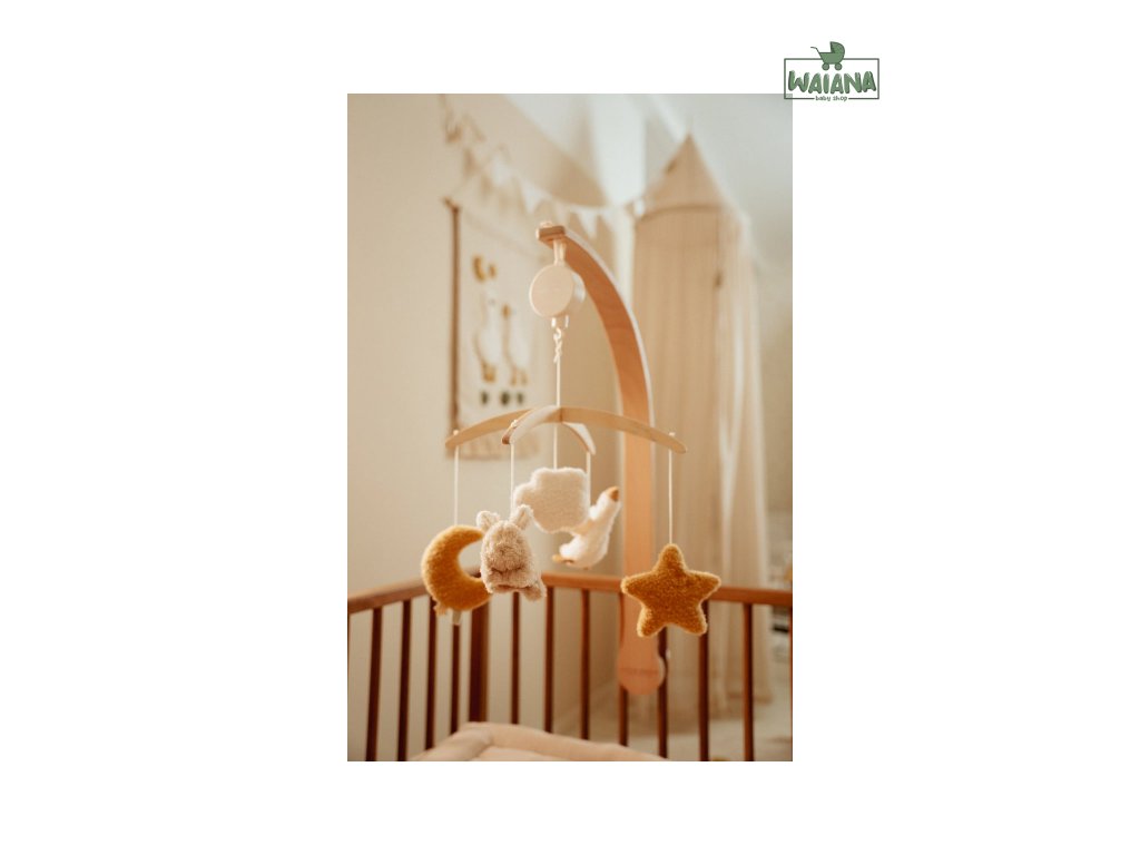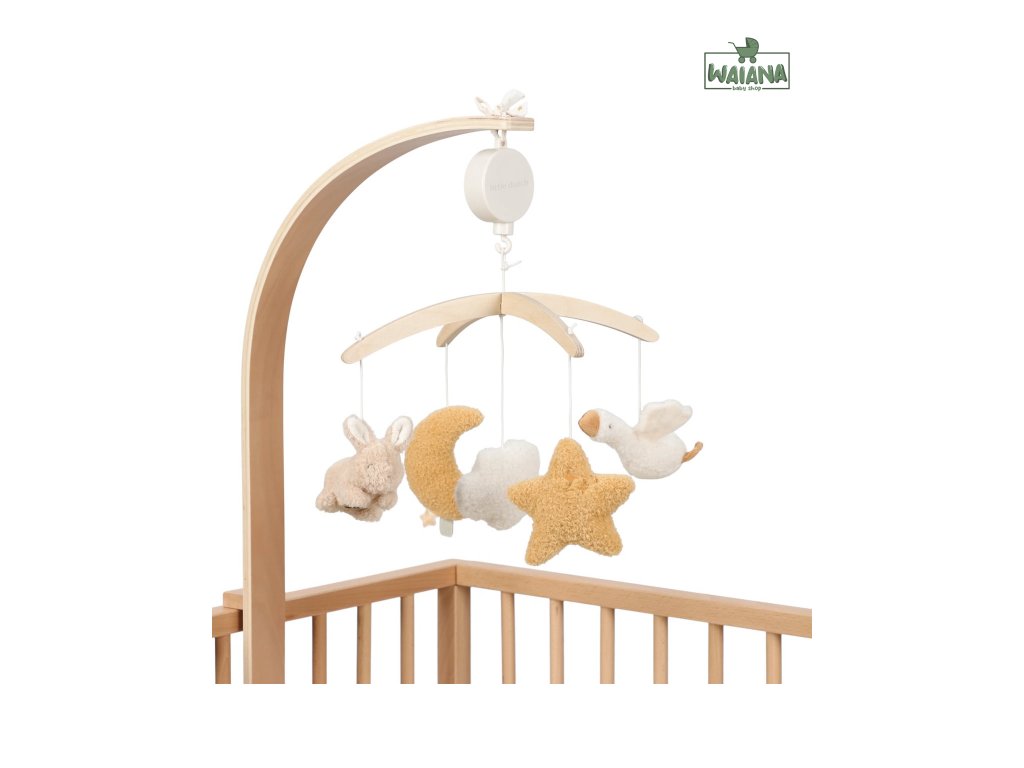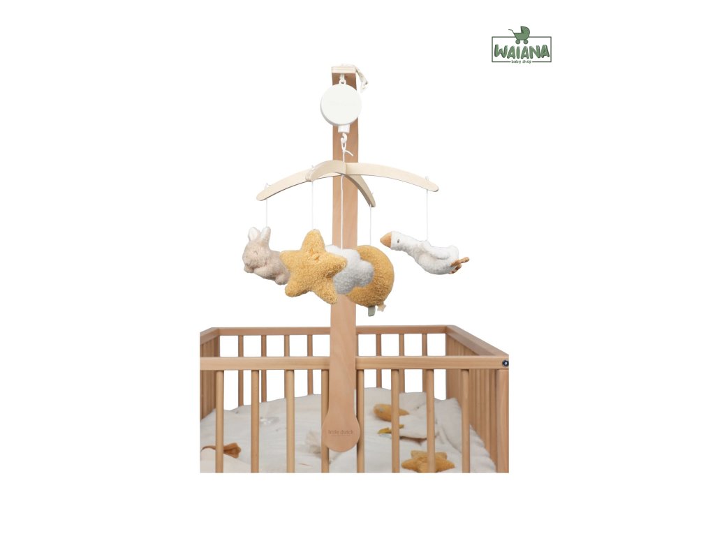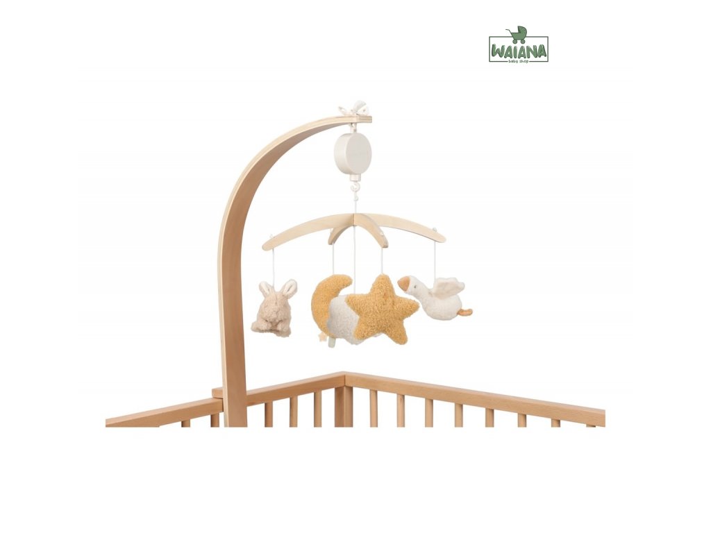 Krásny drevený kolotoč z kolekcie hračiek Little Dutch Newborn Naturals hrá po natiahnutí uspávanku na upokojenie vášho bábätka pred spaním. Pozornosť dieťaťa upúta päť otáčajúcich sa hračiek v podobe králika, husi, hviezdičky, mráčika a mesiaca. Kolotoč podporuje pokojné zaspávanie a zároveň stimuluje zmyslový vývoj bábätka.