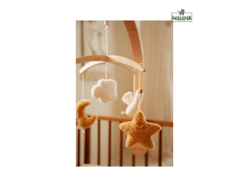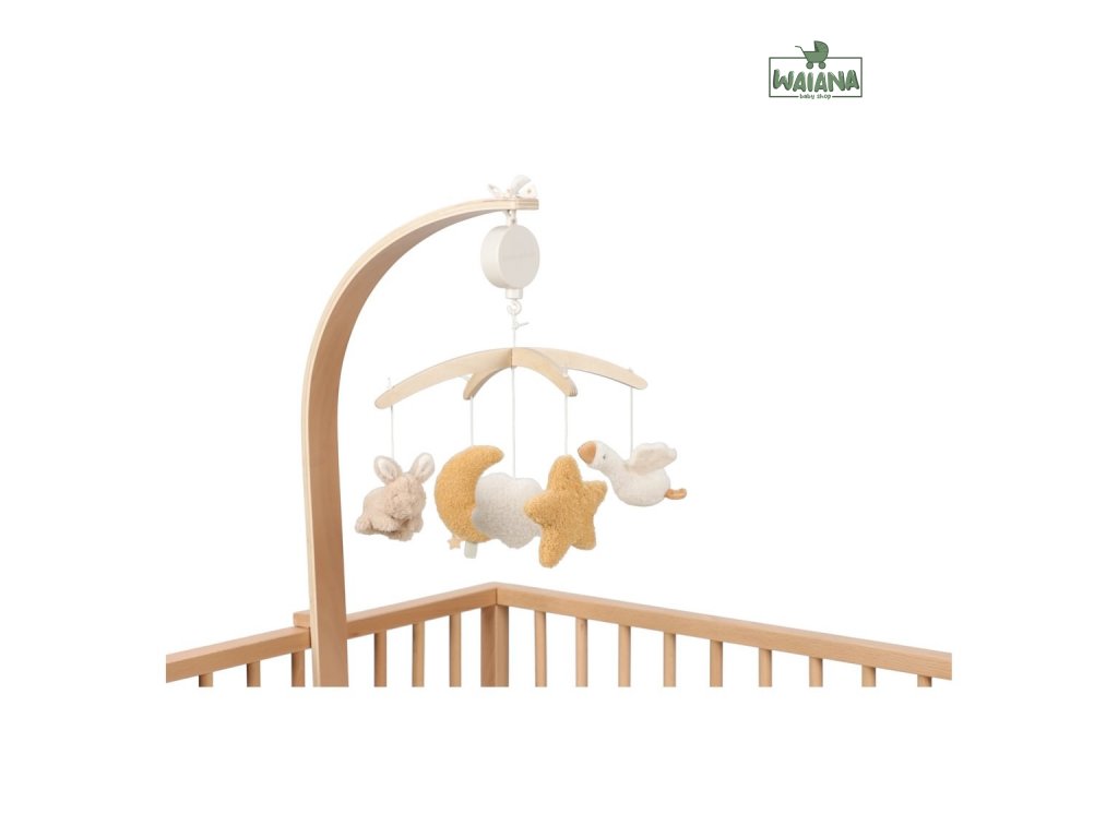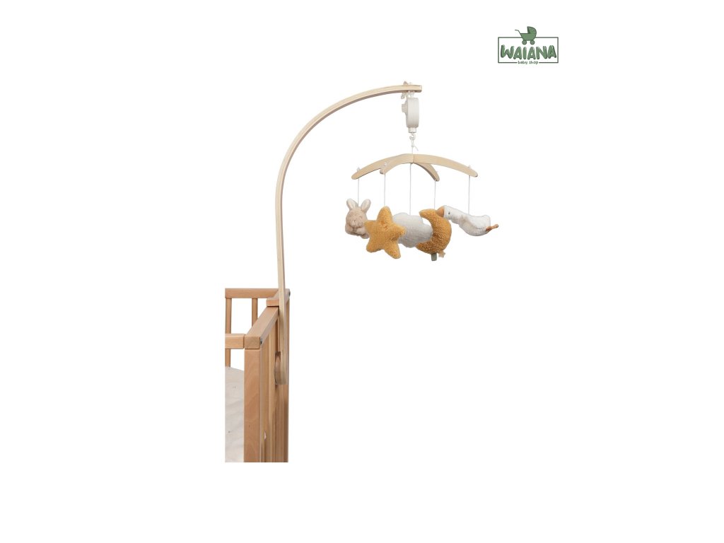 Kolotoč sa ľahko pripevní na postieľku alebo ohrádku.Vysoko kvalitný drevený rám je stabilný a elegantný.
