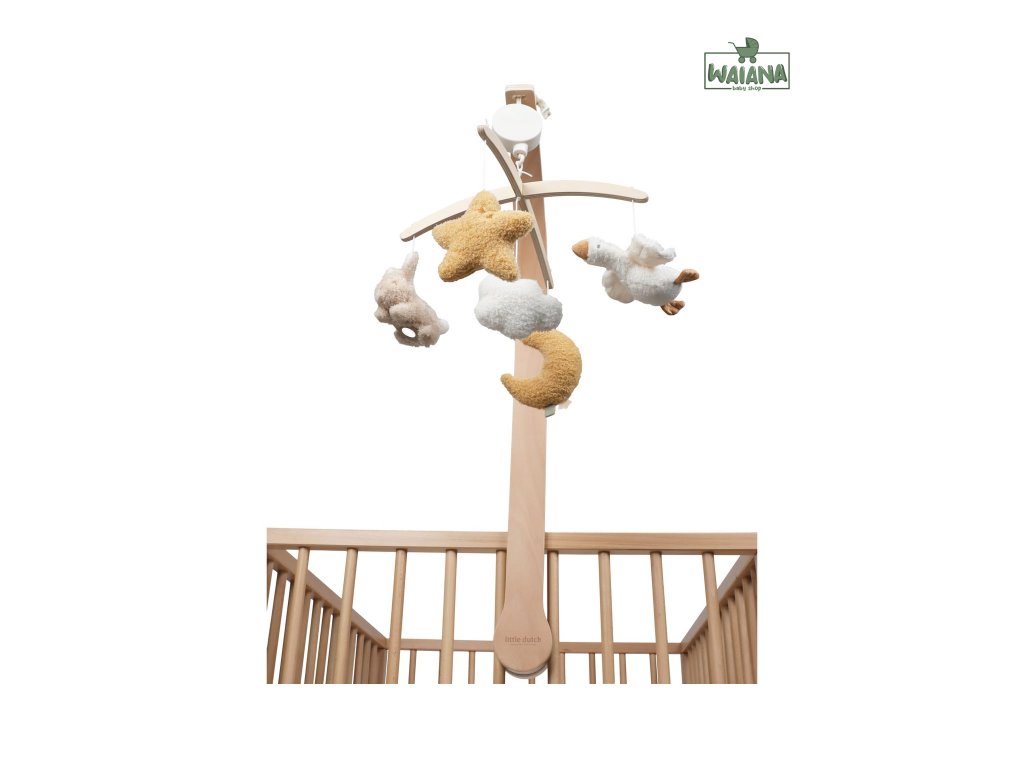 Kolotoč je súčasťou dizajnovej kolekcie hračiek a doplnkov Little Dutch Newborn Naturals.