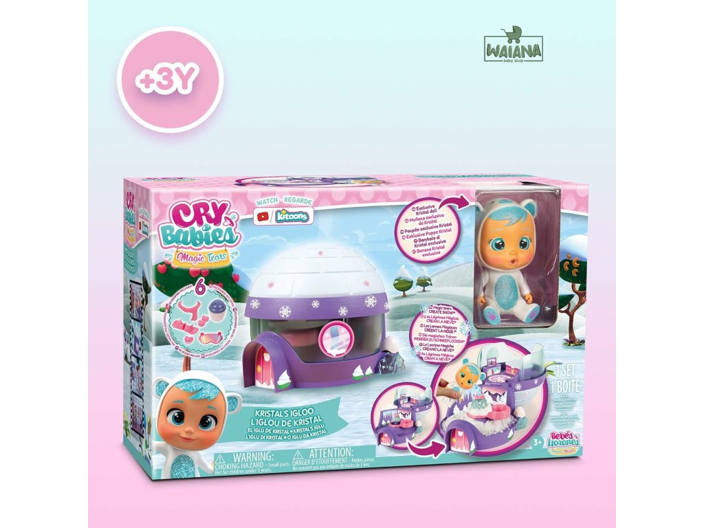 Sada Cry Babies Magic Tears - Igloo Kristal je herný set, ktorý obsahuje exkluzívnu bábiku Kristal a jej iglu domček. Najzaujímavejšou funkciou je, že Kristal plače skutočné slzy a vy ich môžete zbierať v iglu, aby ste v ňom vytvorili sneženie!