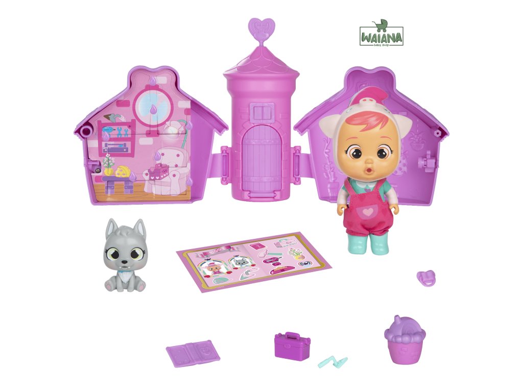 Postavička Cry Babies Magic Tears: Unikátna rozprávková postavička, ktorá sa nachádza v domčeku. Každá postavička má svoje personalizované oblečenie a zvieratko.