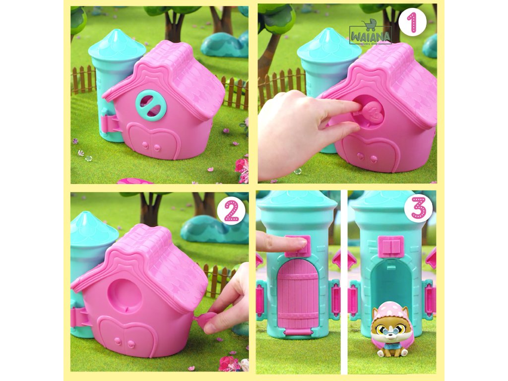 Domček je dostupný v niekoľkých farbách, pričom farba je odoslaná náhodne.Každý balík obsahuje jednu postavičku s príslušenstvom.