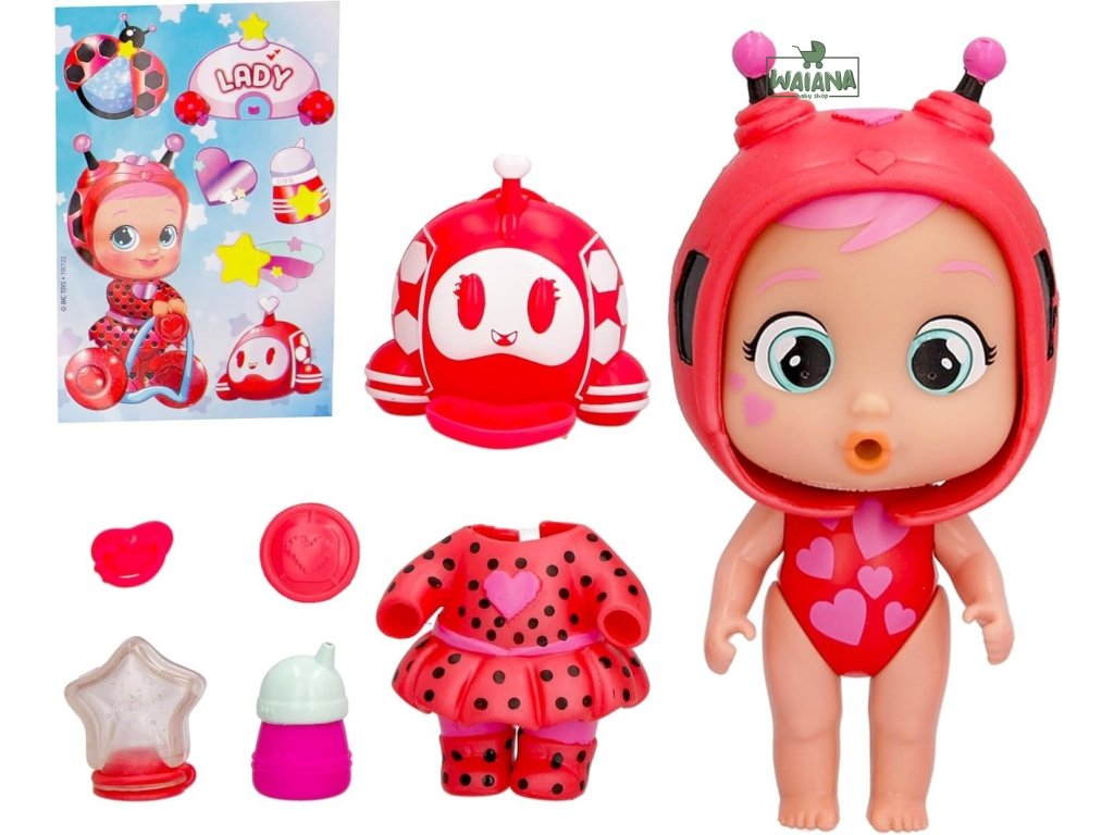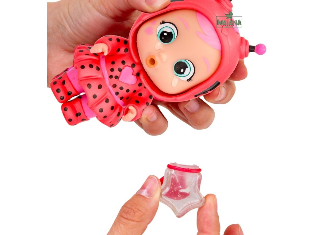 Nakŕmte bábiku: Naplňte fľaštičku vodou a dajte bábike napiť.Rozplačte bábiku: Jemne stlačte bruško bábiky a ona začne plakať skutočné slzy.