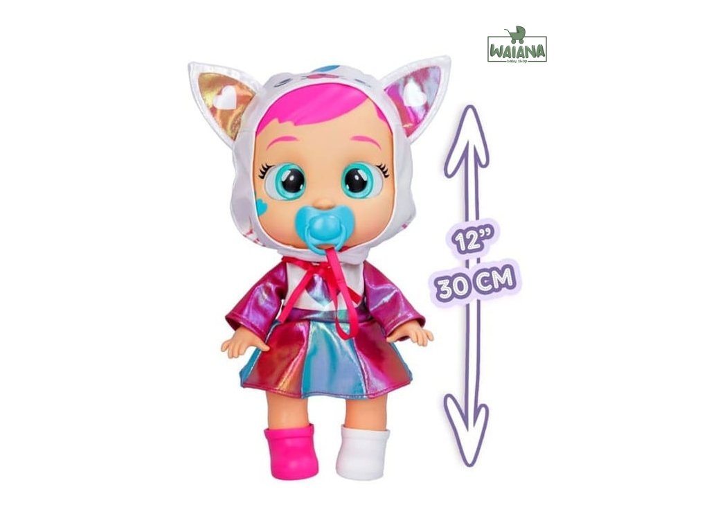 Bábika Cry Babies Star Babies: Každá bábika je mäkká a príjemná na dotyk.Fľaštička: Ako všetky Cry Babies bábiky, aj tieto plačú pravé slzy, keď ich nakŕmiš vodou z fľaštičky.