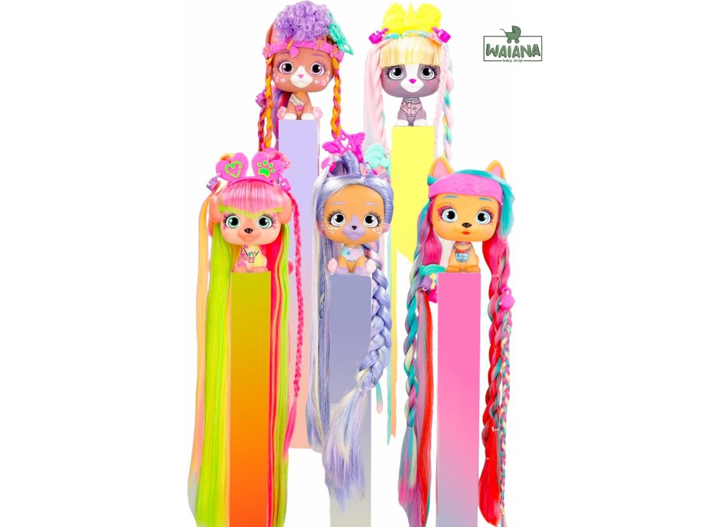 Bábika VIP Pet: Každá sada obsahuje jednu bábiku VIP Pet s dlhými, krásnymi vlasmi.Nožnice: Bezpečné nožnice na strihanie vlasov.Farebné pramene: Farebné pramene na predlžovanie vlasov.Hrebene a kefy: Rôzne nástroje na česanie a styling vlasov.Doplnky: Spinky, gumičky a iné ozdoby na vlasy.