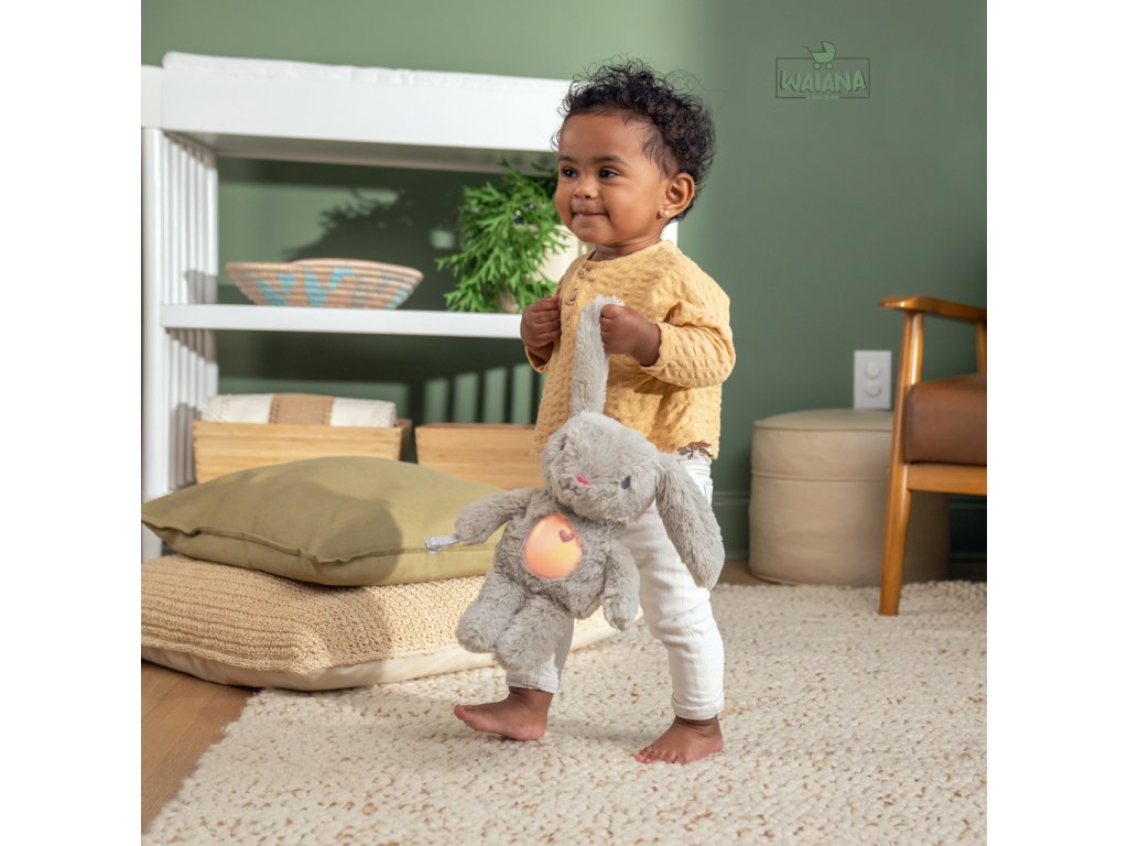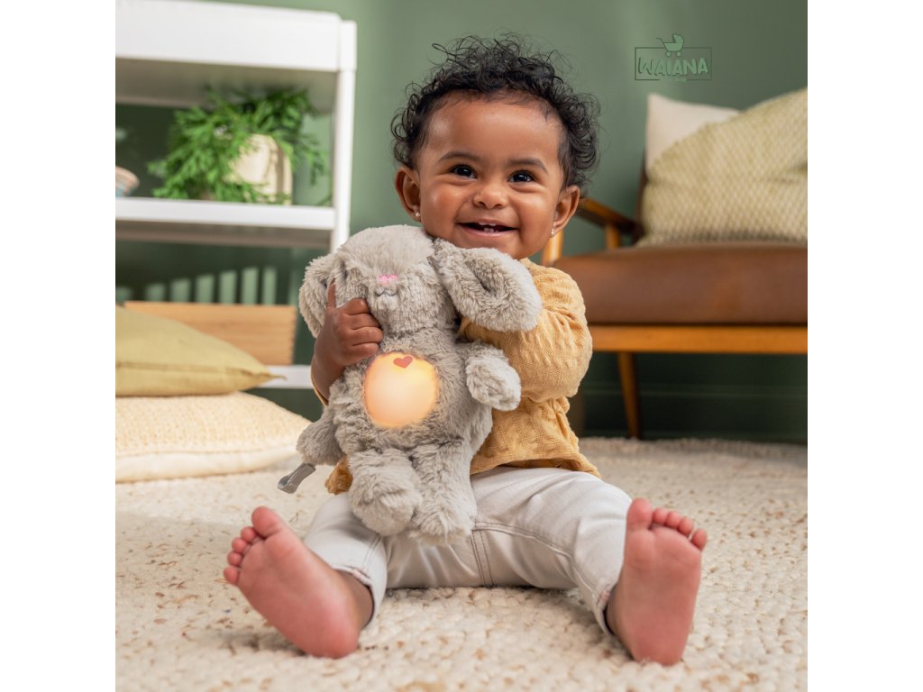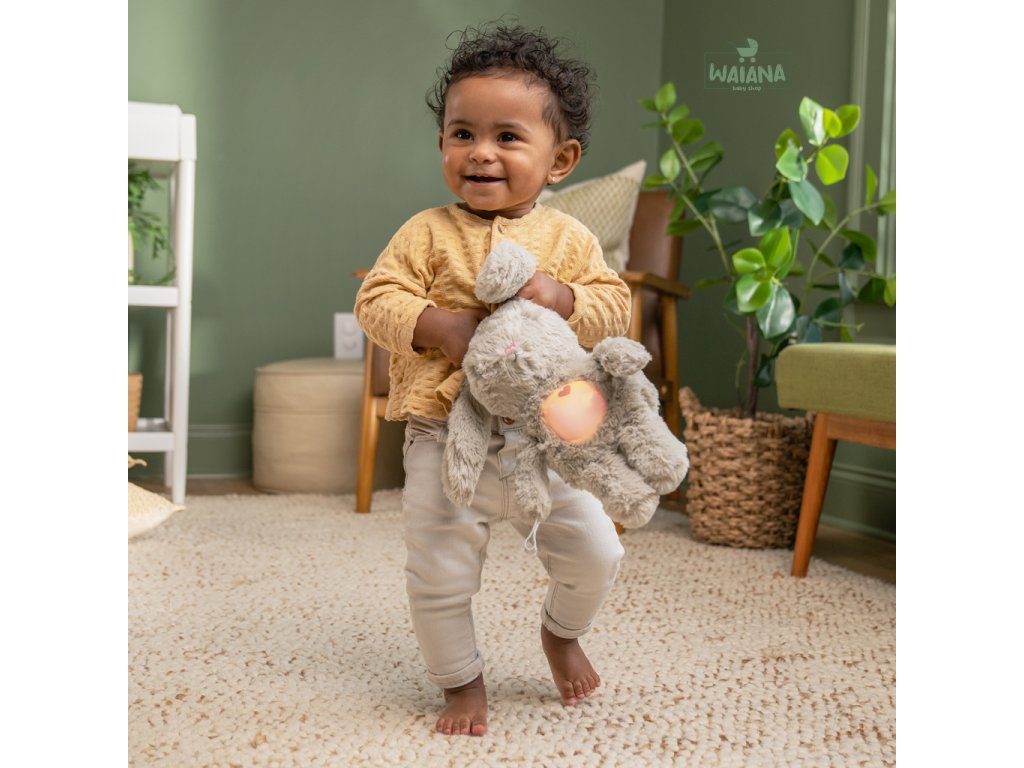 Zoznámte sa so zajačikom Sylvi – milou a zvedavou kamarátkou, ktorá si získa srdce každého bábätka! Jej slnečná povaha rozjasní každý deň a ponúka množstvo "super schopností", ktoré vaše dieťatko objaví – vrátane tlkotu jej srdiečka. Sylvi reaguje priamo na potreby bábätka. Ak zaplače, prehrá jednu z 10 upokojujúcich melódií a prekvapí veselým chichotaním. Po pohybe sa jej „ušká“ aktivujú na 2 minúty a počúvajú, či bábätko nepotrebuje utešiť. Ak áno, Sylvi spustí 7-minútovú uspávanku. Jej mäkkučké bruško svieti 5 rôznymi farbami a reaguje na jemné zatlačenie. Čím viac času bábätko so Sylvi trávi, tým viac si uvedomí, aká verná a citlivá priateľka to je. Vhodné od narodenia. Perfektný darček na baby shower, narodeniny či Vianoce.