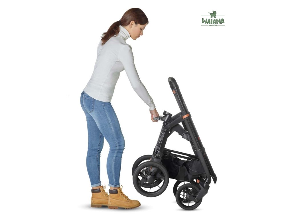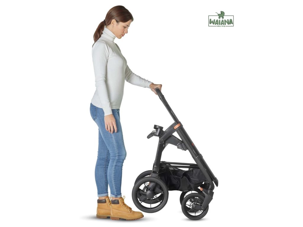 Nový podvozok APTICA XT je stále neuveriteľne praktický a navyše sa vďaka zmenenej geometrii výrazne lepšie ovláda! Rozkladá sa a skladá v okamihu jednou rukou, stojí samostatne, keď je zložený, a rukoväť sa pritom nedotýka zeme, takže ruky neprichádzajú do kontaktu s nečistotami. Teleskopická rukoväť podvozku, nastaviteľná do 4 polôh, sa prispôsobí každej výške postavy. Vyššie oteckovia ocenia viac miesta na nohy pri chôdzi a drobnejšie mamičky zase ľahšie zdvíhanie predných kolies pri prechádzaní obrubníkov.