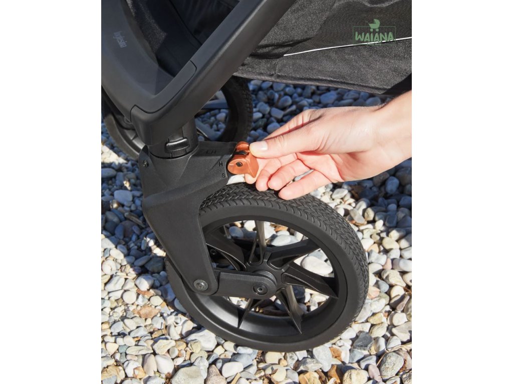 Nový podvozok APTICA XT je stále neuveriteľne praktický a navyše sa vďaka zmenenej geometrii výrazne lepšie ovláda! Rozkladá sa a skladá v okamihu jednou rukou, stojí samostatne, keď je zložený, a rukoväť sa pritom nedotýka zeme, takže ruky neprichádzajú do kontaktu s nečistotami. Teleskopická rukoväť podvozku, nastaviteľná do 4 polôh, sa prispôsobí každej výške postavy. Vyššie oteckové ocenia viac miesta na nohy pri chôdzi a drobnejšie mamičky zase ľahšie zdvíhanie predných kolies pri prechádzaní obrubníkov.