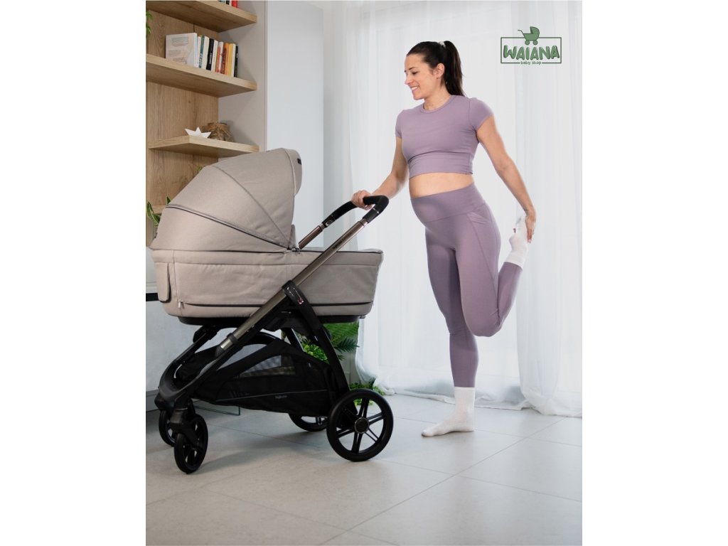 Podobne ako tmavo modrá, ani béžová nevychádza z módy. Nie je sezónne a tak ponúka mnoho možností použitia po celý rok. Aj táto farba poskytuje priestor na personifikáciu kočíka. Aplikácie a lemy z ekokože dokonale ladia ako s poťahom kočíka.