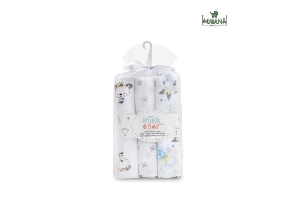 INTERBABY | Plienka ZVIERATKA 3 kusy 80x80 cm - BIELO/ŠEDÁ