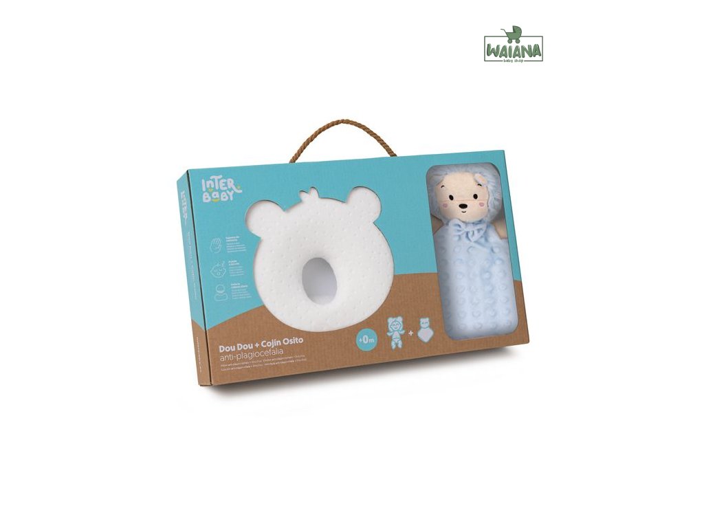 INTERBABY | SET MÉĎA - ergonomický vankúšik + prítulka - modrý