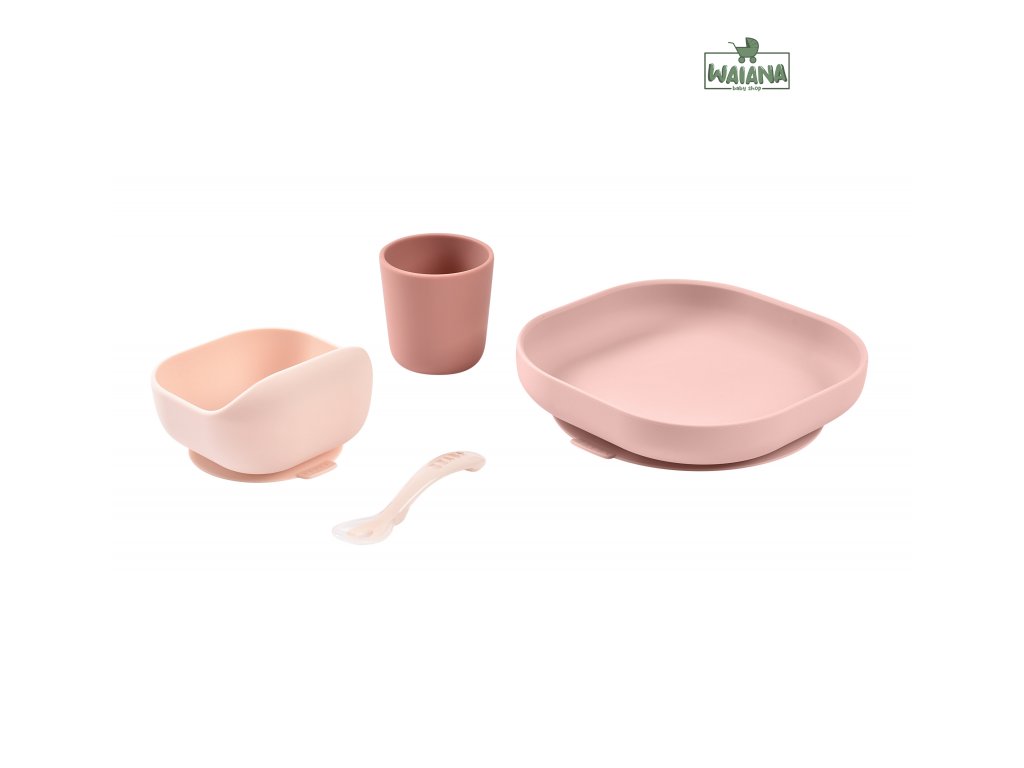 Sada taniera, misky, téglika na pitie a lyžičky z vysoko kvalitného silikónu je ideálna pre prvé samostatné kŕmenie. Prísavka pri miske a tanieri umožňuje uchytenie k stolu alebo pultu jedálenskej stoličky. Ergonomický tvar uľahčuje naberanie príkrmu.