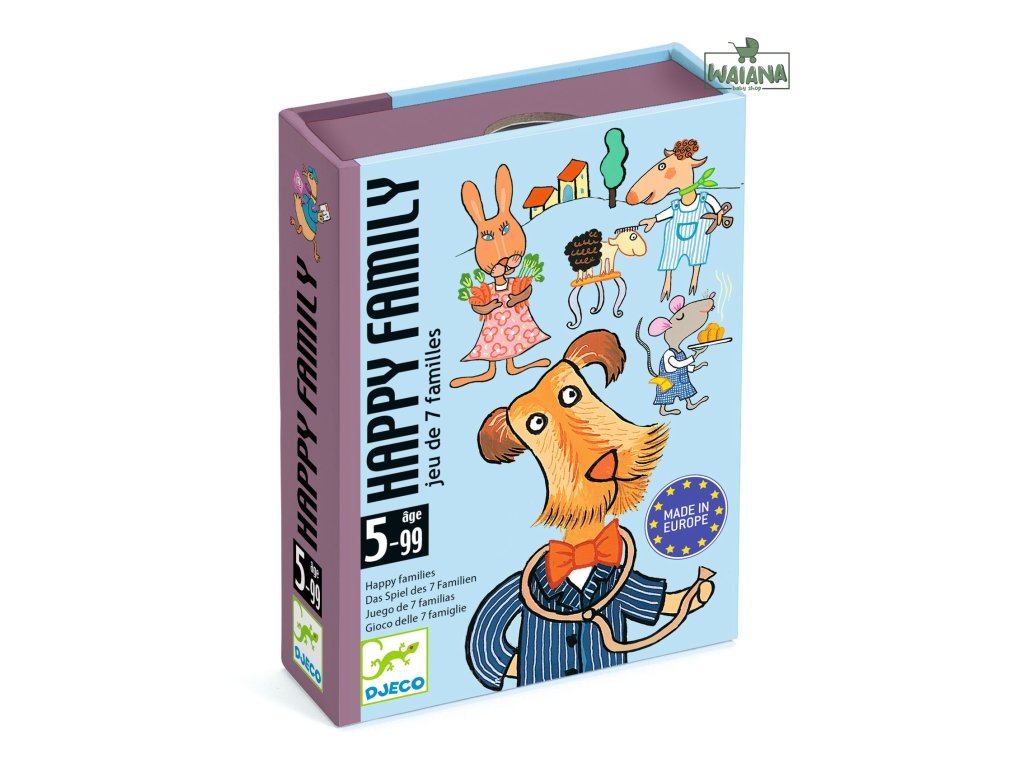 Kartová hra Happy Family Zbieraj celé rodinky a vyhraj najviac setovHappy Family je jednoduchá kartová hra na princípe kvarteta, ideálna ako prvá spoločenská hra pre deti. Cieľ je jasný: postupne si pýtaš karty od spoluhráčov a snažíš sa nazbierať čo najviac kompletných rodiniek.V hre nájdeš 7 rodín (veselé zvieratká) a každá rodina má 6 členov. Keď sa ti podarí poskladať celú rodinku, vyložíš ju pred seba. Hra je rýchla, zábavná a skvelá na tréning pamäte, komunikácie a pravidiel.Pre koho je vhodná: odporúčaný vek: od 5 rokov pre 2 – 5 hráčovObsah balenia 42 kariet (7 rodín po 6 členov) pravidlá hry