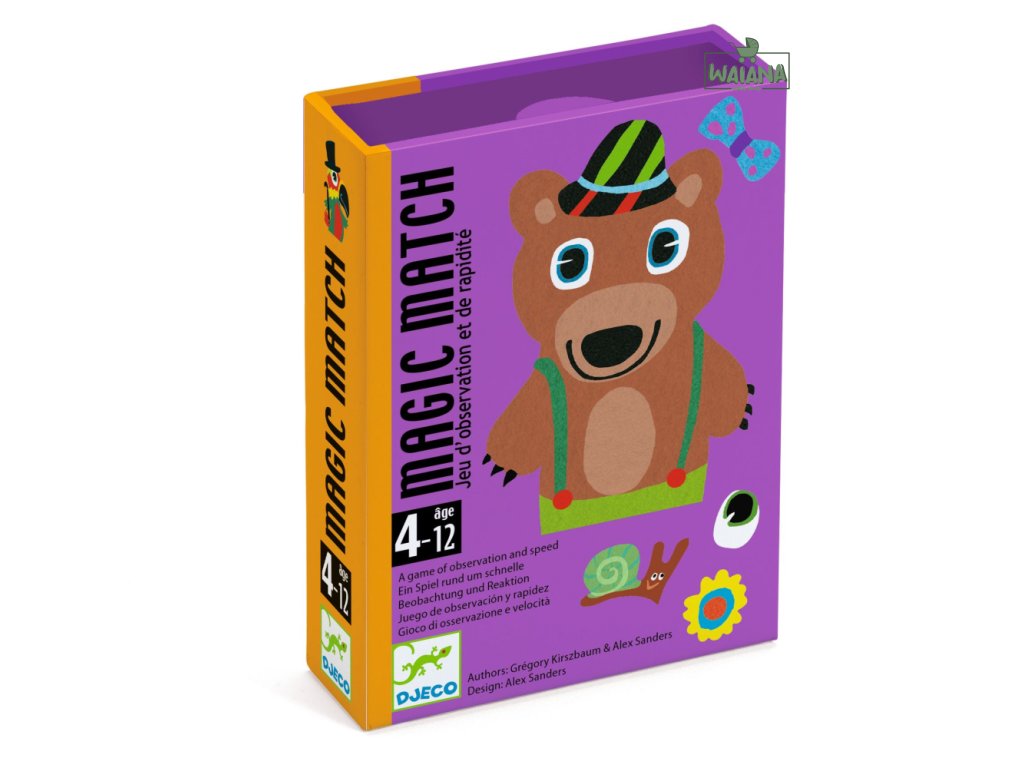 Kartová hra Magic MatchRýchla a zábavná hra na postreh pre malých milovníkov zvieratiekKto nájde správne karty najrýchlejšie? Magic Match je interaktívna kartová hra, ktorá rozvíja pozornosť, postreh a logické myslenie detí vo veku 4 až 12 rokov. Hráči hľadajú jednotlivé časti zvieratiek – oči, uši, chvosty a ďalšie detaily – a snažia sa ich správne kombinovať. Ak sa všetky časti spoja, vznikne celá postava zvieratka, čo je moment plný radosti a kúzla! Hra je rýchla a dynamická, jedno kolo trvá približne 10 minút, takže je ideálna na krátku zábavu, súťaženie a opakovanie. Hrá sa v skupine 2–5 hráčov, pričom každý má šancu získať víťazstvo, ak nájde všetky detaily zvieratiek ako prvý.Prečo si deti hru zamilujú?