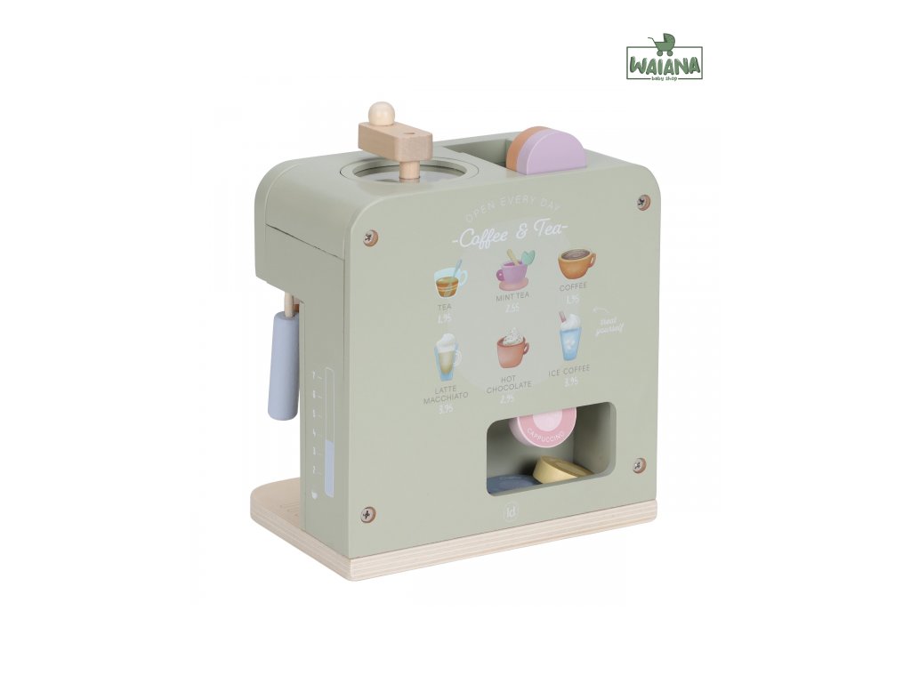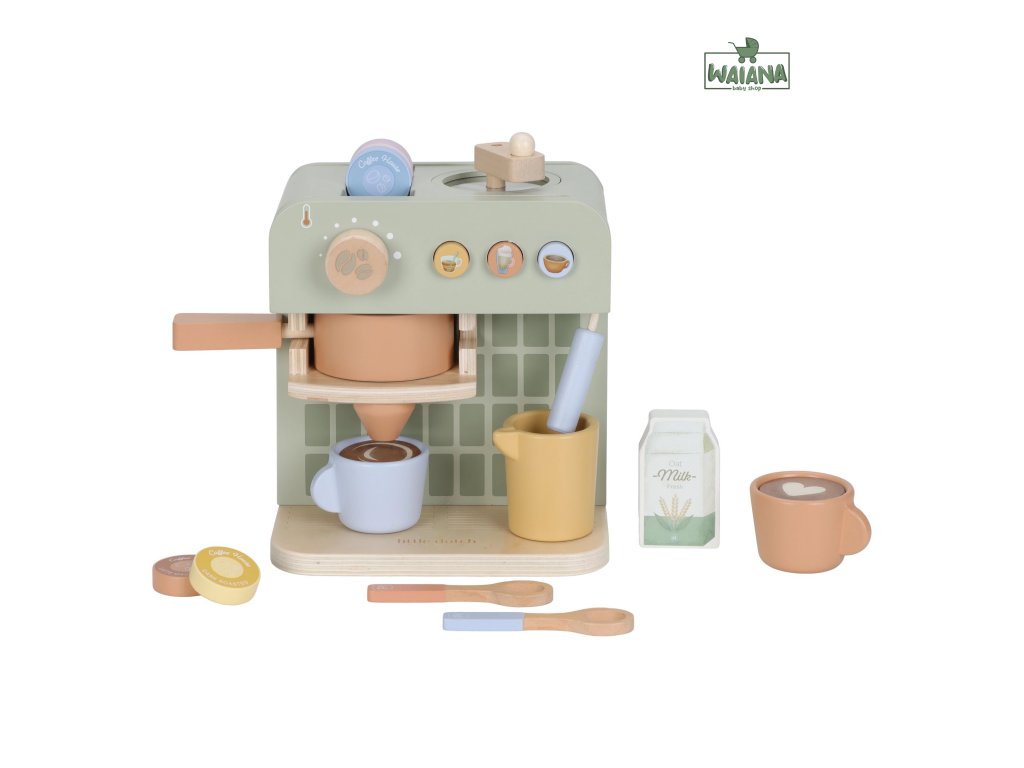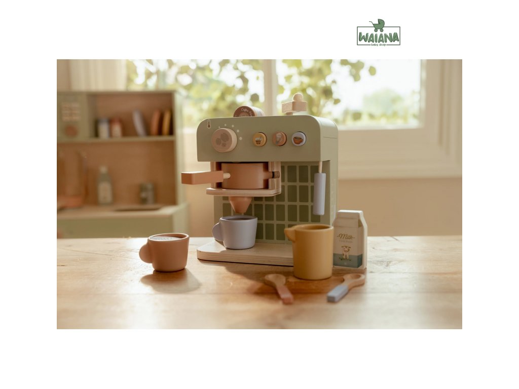 Na akú kávu máte dnes chuť? S týmto krásnym dreveným kávovarom sa z každého dieťaťa stane malý barista. Pre svojich hostí si môže namlieť kávu, vybrať kapsulu, naliať mlieko a ozdobiť nápoj podľa vlastnej fantázie.