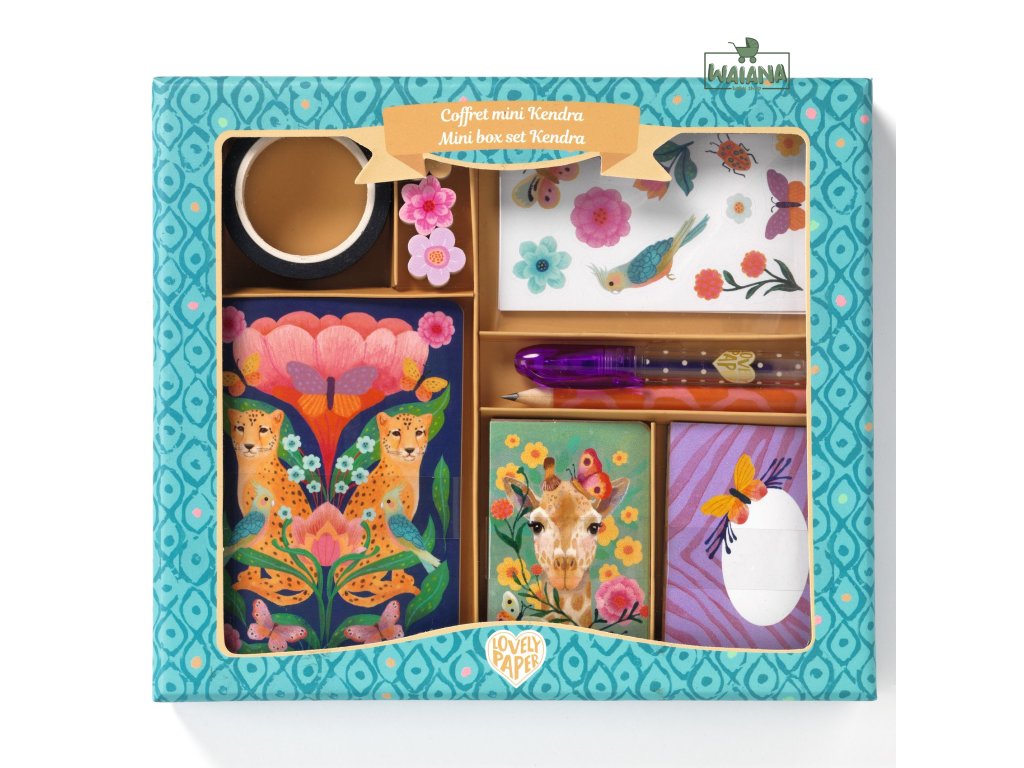 Kendra: Mini korešpondenčná a písacia sadaRoztomilá sada na písanie listov pre detiKendra – mini korespondenčná a písacia sada je krásna a praktická papierenská sada z kolekcie Lovely Paper, ktorá ponúka všetko potrebné pre písanie listov, pozdravov alebo krátkych správ.Prečo si vybrať sadu od Djecokompletná písacia sada pre listy a správyilustrované papiere a obálky pre originálne písaniedekoratívne samolepky na ozdobeniekrásny dizajn z kolekcie Lovely PaperObsah balenia3 mini zápisníky (10 čistých strán)5 mini kariet (rozmery: 4 x 6 cm)5 mini obálok4 hárky samolepiek (2 dizajny x 2 ks)kotúč ozdobnej lepiacej páskymini gélové peromini ceruzka3 mini gumy na gumovanie