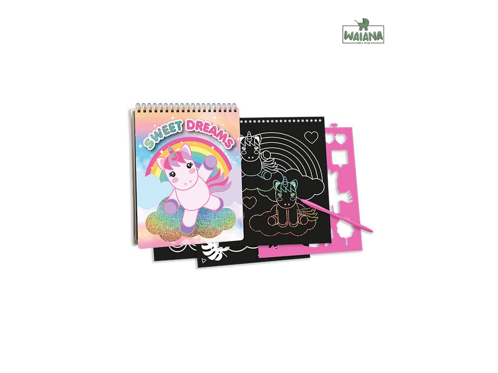 Kreatívna sada so stieracími šablónami s motívom Sweet Dreams je skvelou ponukou pre deti, ktoré si chcú rozvíjať manuálne zručnosti.