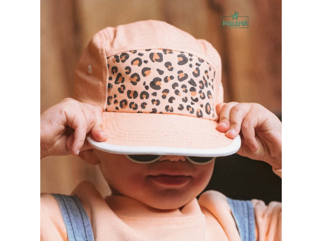 KiETLA šiltovky sú trendy, štýlovým, ale hlavne funkčným doplnkom na slnečné letné dni. Ponúkajú optimálnu ochranu pred škodlivým slnečným UV žiarením. Šiltovka Leopard je vyrobená zo 100 % recyklovanej bavlny s certifikátom GRS (Global Recycled Standard) a má najvyšší index ochrany UPF 50+ pre maximálnu ochranu.Príjemná vzdušná bavlna, pohodlný päťpanelový strih, štýlový rovný šilt a nastaviteľný suchý zips na zadnej strane, vďaka ktorému sa šiltovka ľahko prispôsobí obvodu hlavy... super ochrana a trendy doplnok, ktorý doladí outfit vášho dieťaťa.Filter UPF 50+ je bez chemickej úpravy, materiál neobsahuje žiadne látky škodlivé pre deti a životné prostredie. 100% recyklovaná bavlna s certifikátom GRS. Najvyšší index ochrany UPF 50+ (blokuje až 98 % UVA a UVB lúčov). Nastaviteľný suchý zips na zadnej strane. 4 všité vetracie otvory. Výrobok je v súlade s európskym nariadením 2016/425. Šiltovka je k dispozícii v troch veľkostiach a je vhodná pre deti od narodenia do cca 12 rokov. obvod hlavy 44 – 48 cm. obvod hlavy 48 – 52 cm. obvod hlavy 52 – 56 cm. Upozorňujeme, že šiltovka s UV ochranou nenahrádza potrebu vhodnej ochrany pred slnkom pre iné časti tela.Údržba: Pre čo najdlhšiu životnosť odporúčame: prať ručne, nepoužívať agresívne pracie prostriedky, nežmýkať, nesušiť v sušičke, nechať voľne vyschnúť v tieni.