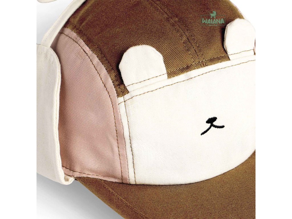 KiETLA klobúčiky a šiltovky s roztomilými macíkovými uškami sú krásnym, ale hlavne funkčným doplnkom na leto. Ponúkajú optimálnu ochranu pred škodlivým slnečným UV žiarením. Klobúčiky a šiltovky sú vyrobené zo 100 % recyklovanej bavlny s certifikátom GRS (Global Recycled Standard) a majú najvyšší index ochrany UPF 50+ pre maximálnu ochranu.Príjemná vzdušná bavlna, pohodlný strih a praktická ochrana krku, ktorá sa dá v prípade potreby vyhnúť a uviazať šnúrkou dohora. Šnúrku môžete použiť aj na uviazanie šiltovky pod bradou.Pre dokonalý štýlový outfit môžete šiltovku nakombinovať s obľúbenými KiETLA Ours’on okuliarmi, čím zabezpečíte maximálnu ochranu Vášho drobca pred UV žiarením. Vďaka jedinečnému systému môžete šiltovku s okuliarmi spojiť. Už žiadne lietajúce šiltovky či stratené okuliare!Filter UPF 50+ je bez chemickej úpravy, materiál neobsahuje žiadne látky škodlivé pre malé deti a životné prostredie. 100% recyklovaná bavlna s certifikátom GRS. Najvyšší index ochrany UPF 50+ (blokuje až 98 % UVA a UVB lúčov). Hravé detaily v podobe macíkových uší či nošteka. Šnúrka pod bradu. Systém pripevnenia gumičky slnečných okuliarov ku klobúčiku. Výrobok je v súlade s európskym nariadením 2016/425. Šiltovka je k dispozícii v dvoch veľkostiach pre deti od narodenia do cca 6 rokov: obvod hlavy 44 – 48 cm. obvod hlavy 48 – 52 cm. Upozorňujeme, že šiltovka s UV ochranou nenahrádza potrebu vhodnej ochrany pred slnkom pre iné časti tela.Údržba: Pre čo najdlhšiu životnosť odporúčame: prať ručne, nepoužívať agresívne pracie prostriedky, nežmýkať, nesušiť v sušičke, nechať voľne vyschnúť v tieni.