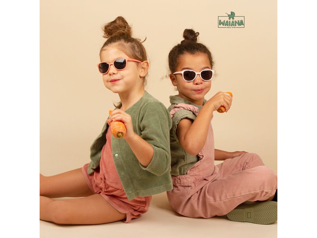 Prémiové slnečné okuliare vyvinuté francúzskymi odborníkmi špeciálne pre malé deti. Sú jedinečné vďaka nerozbitnému, flexibilnému, extra ľahučkému rámu, ktorý netlačí za uškami ani na nose. Poskytujú tú najvyššiu ochranu UV filtrov spolu s filtrom modrého svetla v kvalitných polykarbonátových sklách. Dokonalá ochrana a dokonalý dizajn aj pre tie najmenšie deti. Extra ochrana 100% UVA, UVB a UVC filter, kategória 3 odolné polykarbonátové sklá (kvalitnejší filter ako akrylové sklá) novinka – Blue Blocker – filter škodlivého modrého svetla dostatočná veľkosť skiel, aby zatienila celé okolie očí certifikované podľa európskych noriem EN ISO 12312-1:2013/A1:2015 Extra bezpečnosť nerozbitný ohybný rám – deti bočnice nezlomia ani nevykrútia bez nebezpečných pántov a skrutiek, ktoré znamenajú nebezpečenstvo pri úrazoch Extra pohodlie ultra ľahký a flexibilný rám bočnice tenké a tvarované, aby netlačili za uškami odnímateľná gumička udrží okuliare správne nasadené Rešpekt k prírode plne recyklovateľné nerozbitné = dlhá životnosť praktický obal „CARRY-ME“ z recyklovaného papiera Doplnky v balení: prispôsobiteľný popruh vrecúško na okuliare vhodné aj na čistenie okuliarov Možnosť vloženia dioptrických skiel, informujte sa u Vášho optika. Veľkosť 1-2 roky: Šírka okuliarov: 96 mm Výška okuliarov: 35 mm Dĺžka stránic: 125 mm Veľkosť 2-4 roky: Šírka okuliarov: 102 mm Výška okuliarov: 38 mm Dĺžka stránic: 125 mm Veľkostnú tabuľku KiETLA nájdete tu . Detské oči sú na slnko veľmi citlivé a zraniteľné. Šošovka ešte nie je dostatočne vyvinutá, aby chránila sietnicu ako u dospelých. Šošovka sa vyvíja až do veku 12 rokov dieťaťa. Dovtedy veľká časť UV žiarenia prechádza až k sietnici a spôsobuje poškodenia, ktoré sa vekom kumulujú a môžu sa prejaviť až v dospelosti. Preto je veľmi dôležité chrániť oči detí už od malička.