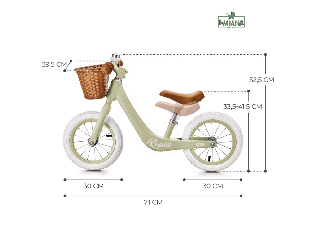 Pohodlné sedlo umožňuje široký rozsah nastavenia výšky, takže bicykel rastie spolu s vaším dieťaťom. Bicykel RAPID má aj obmedzenia otáčania riadidiel, ktoré chránia vaše dieťa pred nekontrolovaným otáčaním počas učenia jazdy. A nízko posadený rám uľahčuje nasadanie a zosadanie. Balančný bicykel RAPID, rovnako ako všetky ostatné balančné bicykle Kinderkraft, podporuje rozvoj rovnováhy a motoriky. Zároveň vo vašom dieťati vzbudí lásku k aktivitám na čerstvom vzduchu.