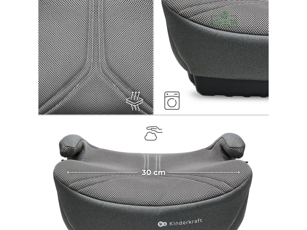 Kinderkraft I-BOOST 2 PRO je moderný podsedák navrhnutý pre staršie deti, ktorý kombinuje vysokú úroveň bezpečnosti podľa normy R129 i-Size s komfortom na každodenné používanie. Je určený pre deti vysoké 125–150 cm, približne vo veku 6 až 12 rokov. Praktické riešenie, ktoré rastie spolu s dieťaťom a poskytuje ochranu aj pohodlie v každej fáze cestovania. Model sa vyznačuje stabilnou inštaláciou ISOFIX, ktorá umožňuje rýchle a bezpečné upevnenie autosedačky do vozidla. Široké a mäkké sedadlo s penovou výplňou, v kombinácii s priedušným poťahom AIR FLOW, zaručuje maximálny komfort aj počas dlhších ciest. Ergonomické opierky rúk zvyšujú pohodlie, zatiaľ čo praktické vodiace prvky pásu pomáhajú správne umiestniť bezpečnostný pás. I-BOOST 2 PRO má ľahký a kompaktný dizajn, ktorý uľahčuje každodenné používanie, a vďaka odnímateľnému poťahu je čistenie rýchle a jednoduché.