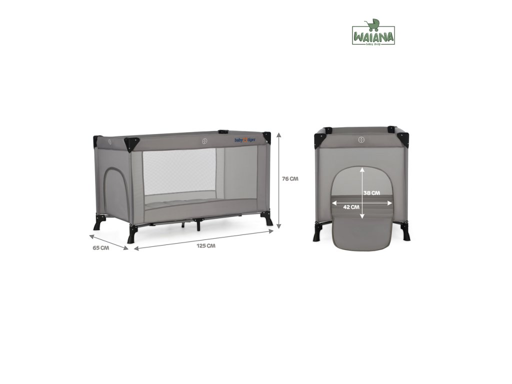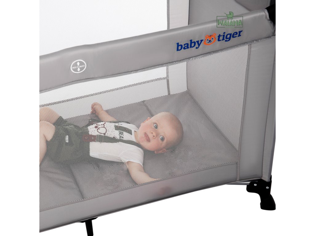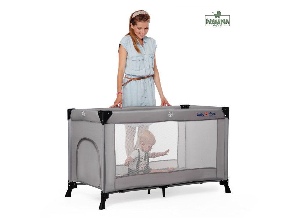 VIKI by Baby Tiger bol navrhnutý pre mobilných rodičov, ktorí sa nechcú vzdať cestovania so svojím dieťaťom. Táto cestovná postieľka s plochou na spanie 120 x 60 cm umožňuje vášmu dieťaťu pohodlný spánok za akýchkoľvek podmienok - v hoteli, na chate alebo pri pobyte u rodiny či priateľov.
