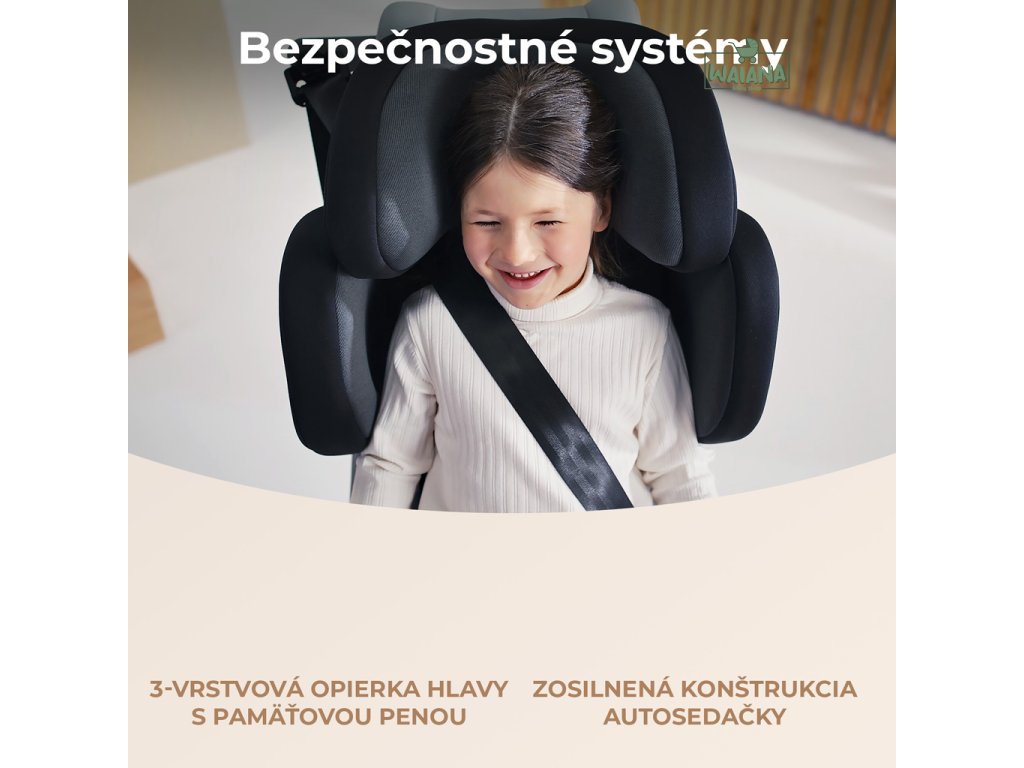 - Bočný ochranný systém zabezpečuje hlavu a ramená dieťaťa